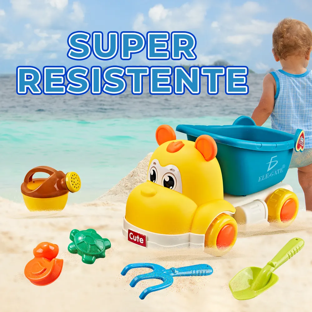 - 6 Piezas: Incluye un camión de hipopótamo, dos palas, una regadera y dos moldes, proporcionando una variedad de opciones para jugar en la arena.
