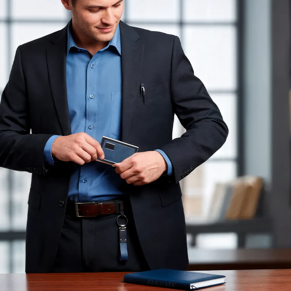 Diseño premium: Acabado tipo piel en tono Azul Rey, con costuras finas y detalles modernos que transmiten elegancia y profesionalismo.