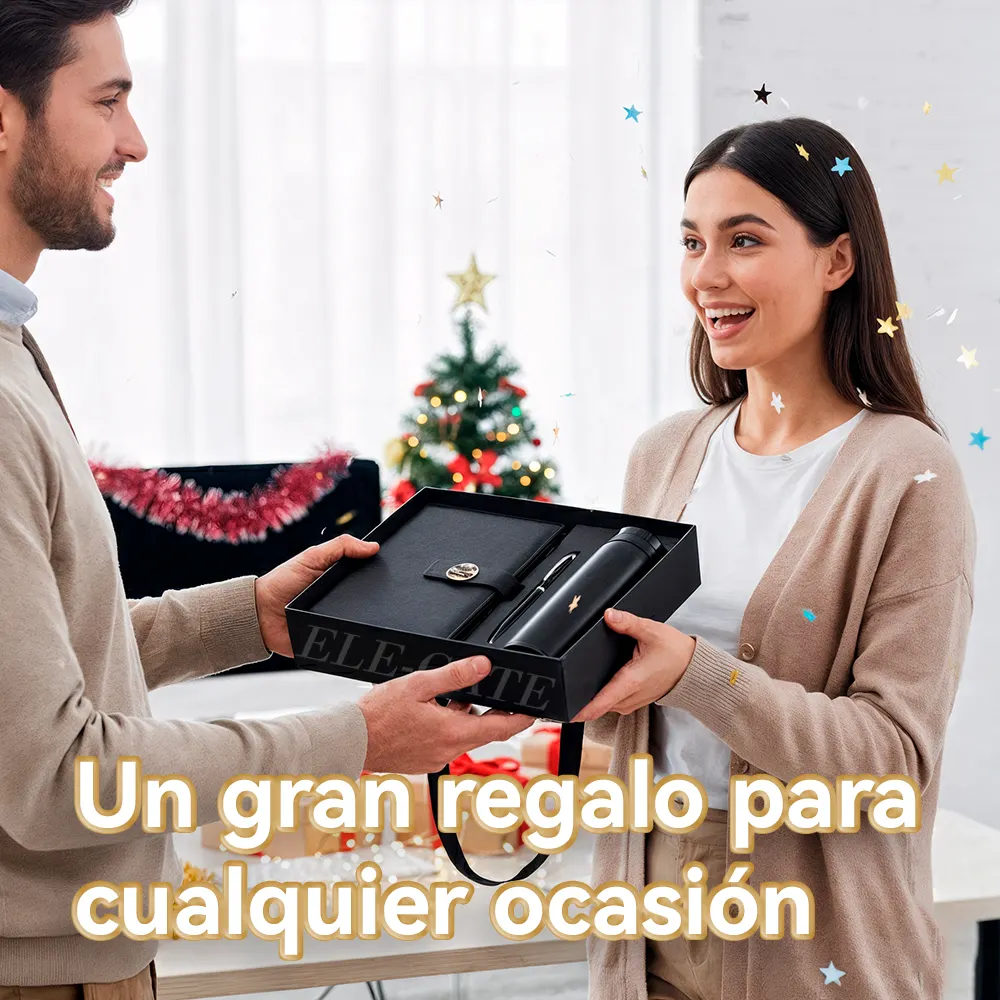 La pluma tipo fuente con ball pen ofrece una escritura suave y cómoda, perfecta para el uso diario en la oficina, la escuela o reuniones importantes. El termo de acero inoxidable es ideal para mantener tus bebidas favoritas a la temperatura adecuada durante el día.