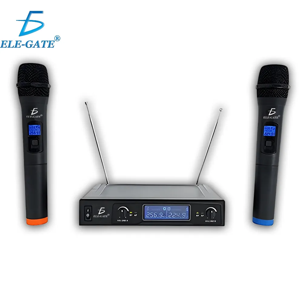 - Características: Sistema de micrófono inalámbrico de mano de doble canal, gran visualización en el receptor + visualización digital en cada micrófono, cada micrófono es grande y sólido con una agradable sensación de peso, cápsula de micrófono inalámbrico de alto rendimiento mejorada, estos micrófonos son extremadamente sensibles, lo que es ideal porque puedes mantener el micrófono lejos de tu boca y todavía obtener un sonido claro, incluye transmisor con dos manos de alta sensibilidad, unidireccional, micrófonos de identificación