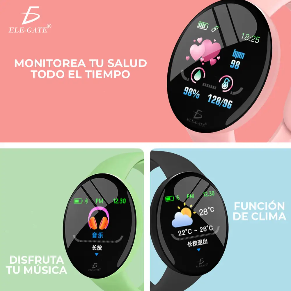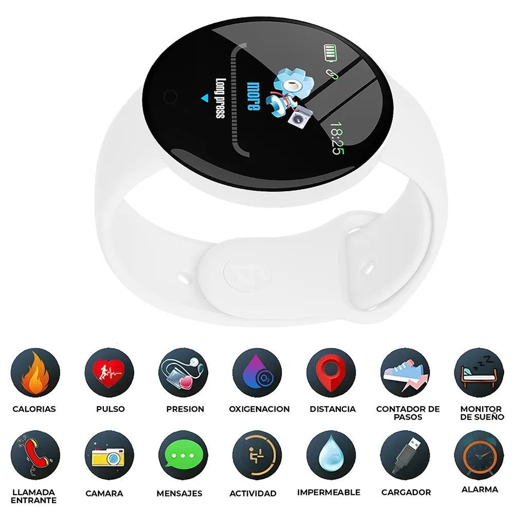 Smart Watch Bt4.0 Diseño Deportivo con Caratula Redonda. Gracias a su diseño compacto puede usarse por hombres o mujeres. Ideal para actividades deportivas. Gracias a sus app que te ayudan a llevar el control de tus pulsaciones y pasos.