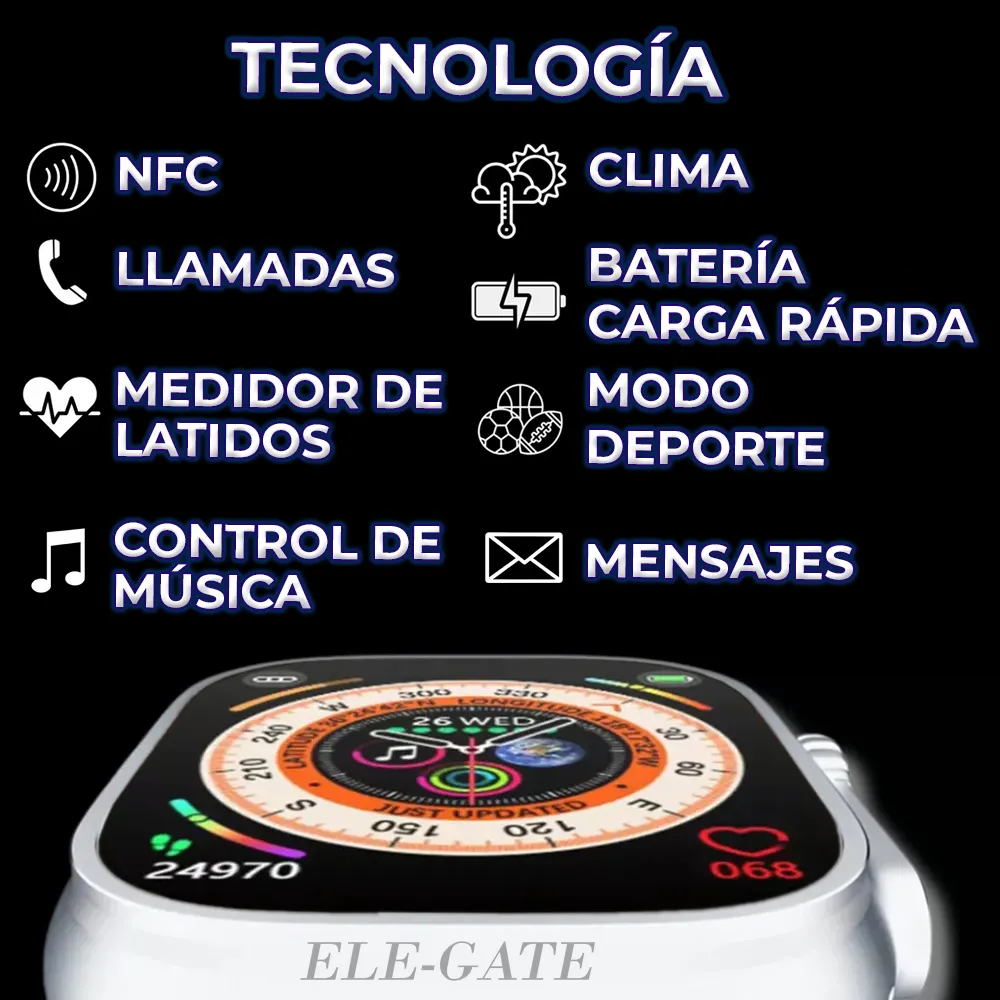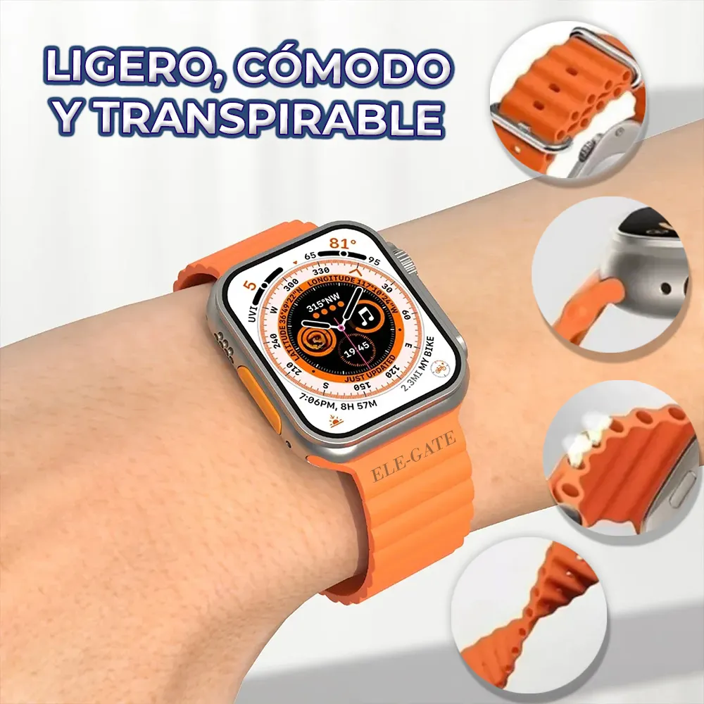 Sumérgete en la versatilidad y el estilo con nuestro Smart Watch, equipado con 7 correas intercambiables para adaptarse a tu estilo personal. Disfruta de una experiencia visual nítida con su pantalla HD de 2,1 pulgadas y resolución de 420*485 protegida por vidrio Corning Gorilla. Con activación de pantalla rápida, estarás siempre al tanto de la hora y las notificaciones. Mantén el control con funciones como reloj mundial, notificaciones de aplicaciones y múltiples esferas de reloj en espera. Además, registra tu progreso con el historial de aplicaciones y accede rápidamente al modo deportivo con la tecla de acceso rápido integrada. Con nuestro Smart Watch, lleva tu estilo de vida activo al siguiente nivel.