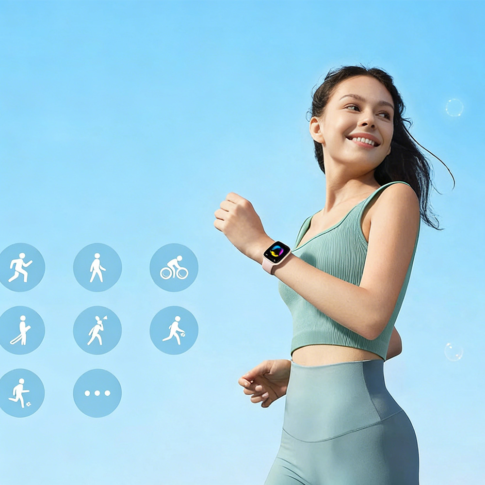 Smart Watch Fashion con pantalla touch cuadrada redondeada de 2 pulgadas, diseñado para acompañarte en tu día a día y en todas tus actividades deportivas.