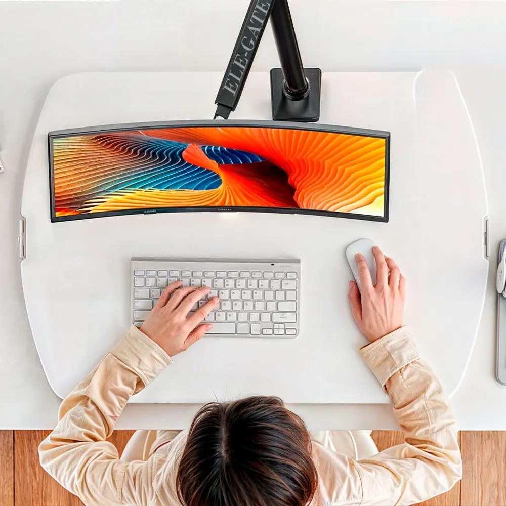 Además, este soporte puede extenderse hasta 50 cm, lo que te permite ajustar la distancia entre la pantalla y tu área de trabajo para obtener una experiencia de visualización óptima. Esta función es particularmente útil para encontrar la posición ergonómica adecuada y mejorar la comodidad durante largas sesiones frente a la pantalla.