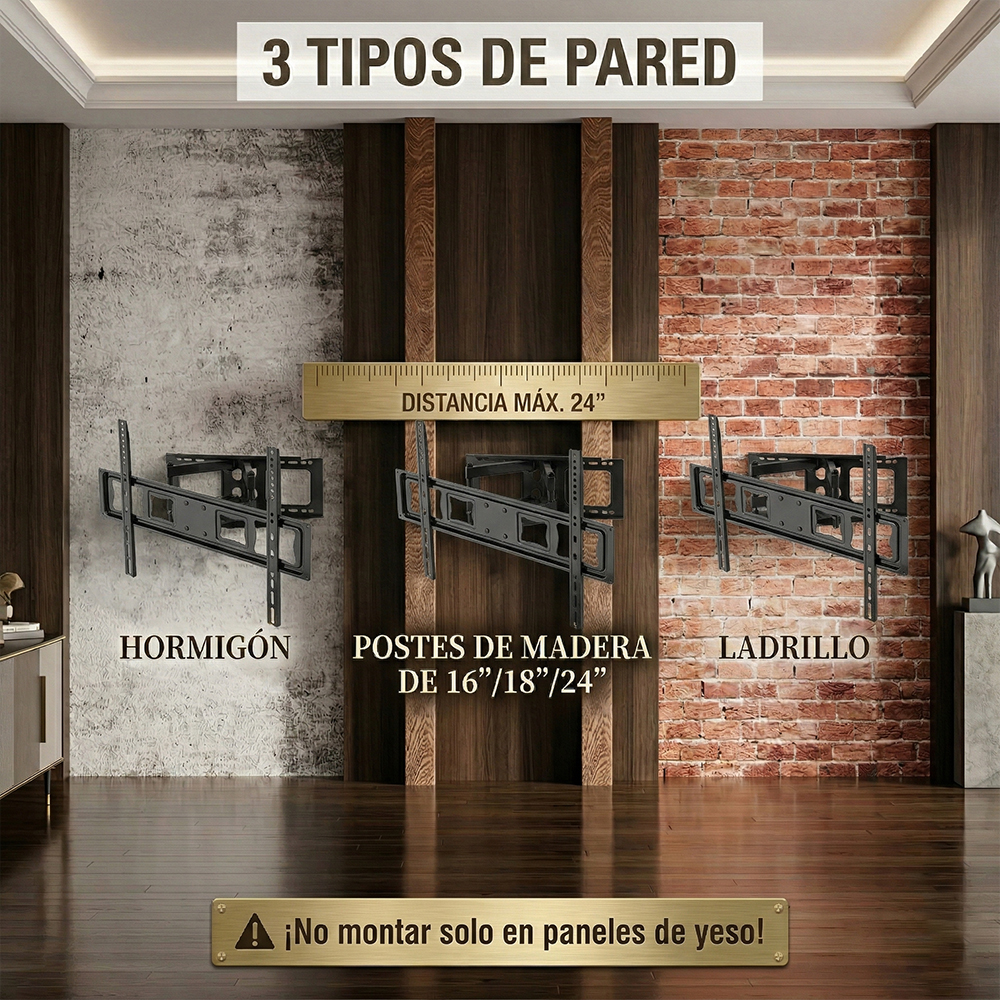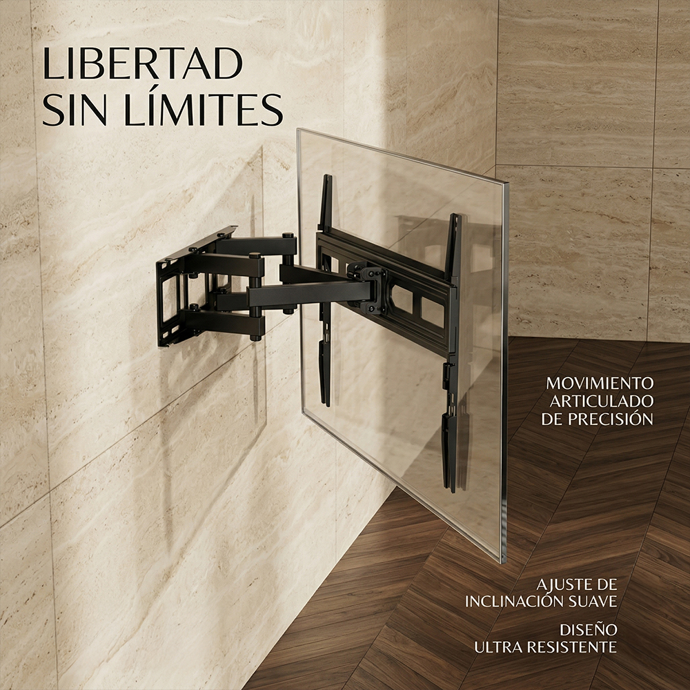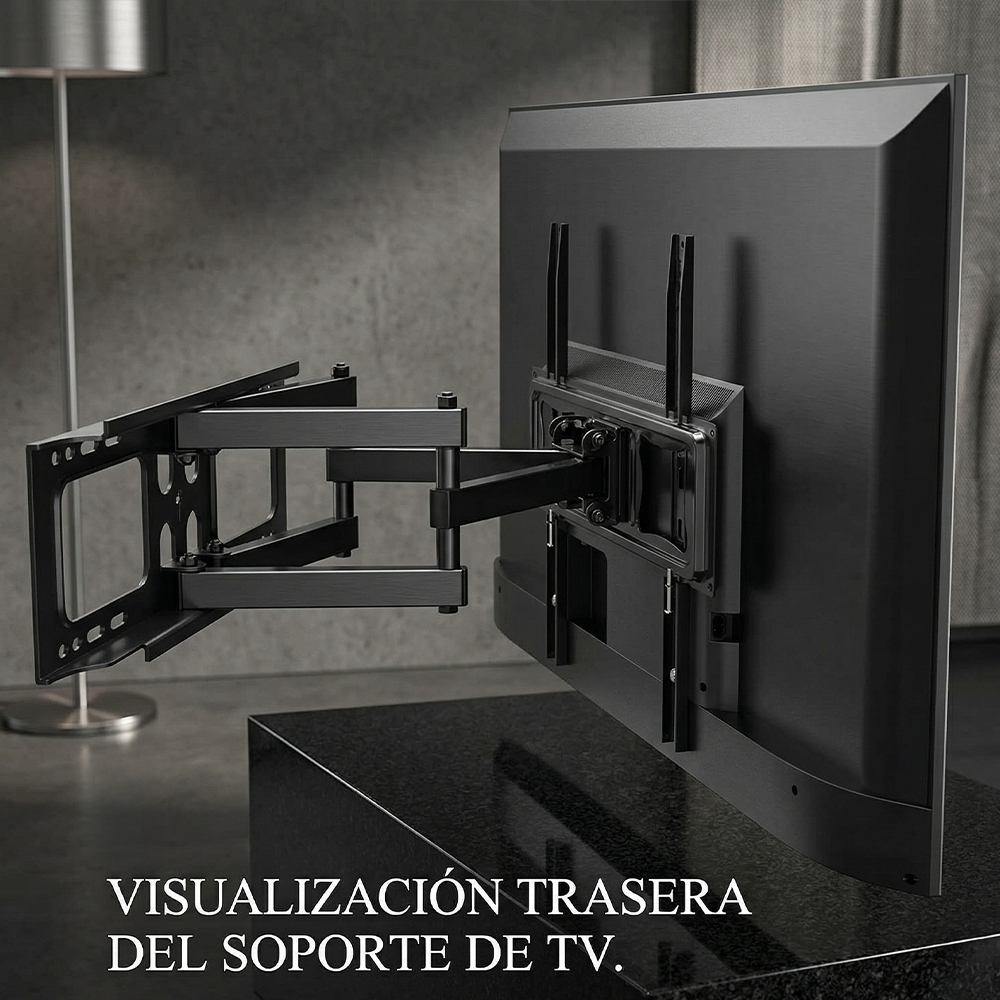 Fabricado con materiales de alta resistencia, este soporte cuenta con brazos articulados reforzados que ofrecen estabilidad, seguridad y durabilidad incluso en uso constante. Es compatible con la mayoría de televisores LED, LCD y Smart TV, convirtiéndolo en la opción ideal para el hogar o la oficina.