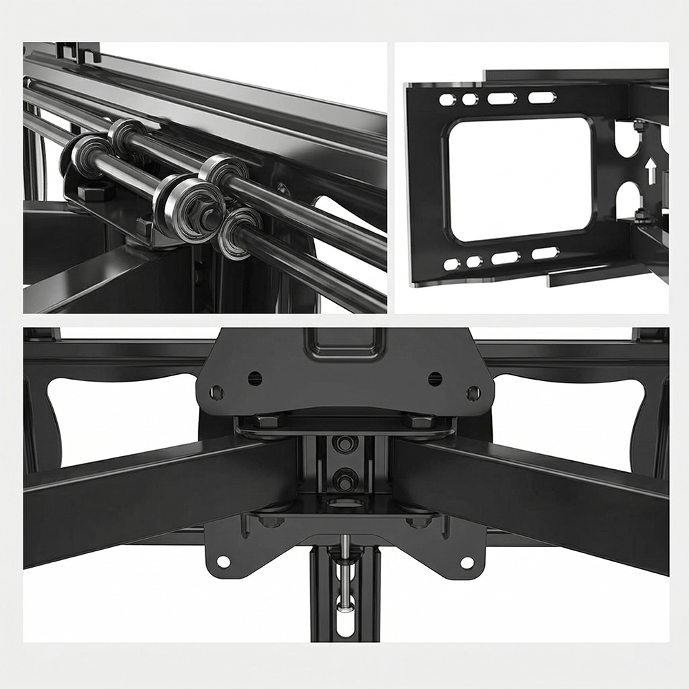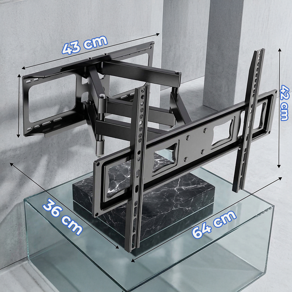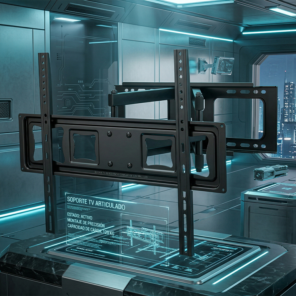 Fabricado con materiales de alta resistencia, este soporte cuenta con brazos articulados reforzados que ofrecen estabilidad, seguridad y durabilidad incluso en uso constante. Es compatible con la mayoría de televisores LED, LCD y Smart TV, convirtiéndolo en la opción ideal para el hogar o la oficina.