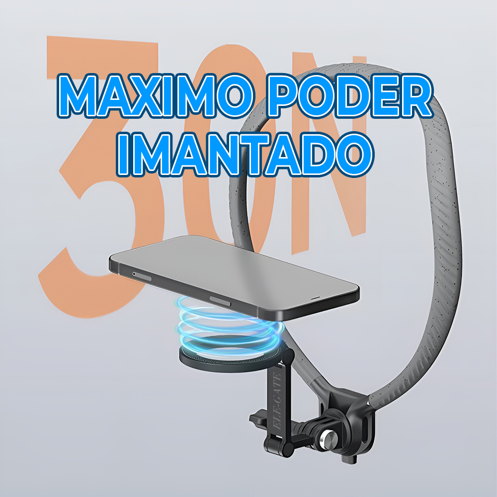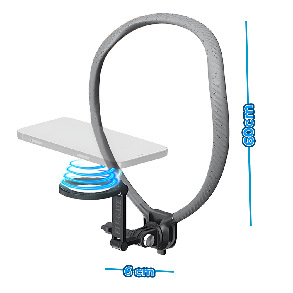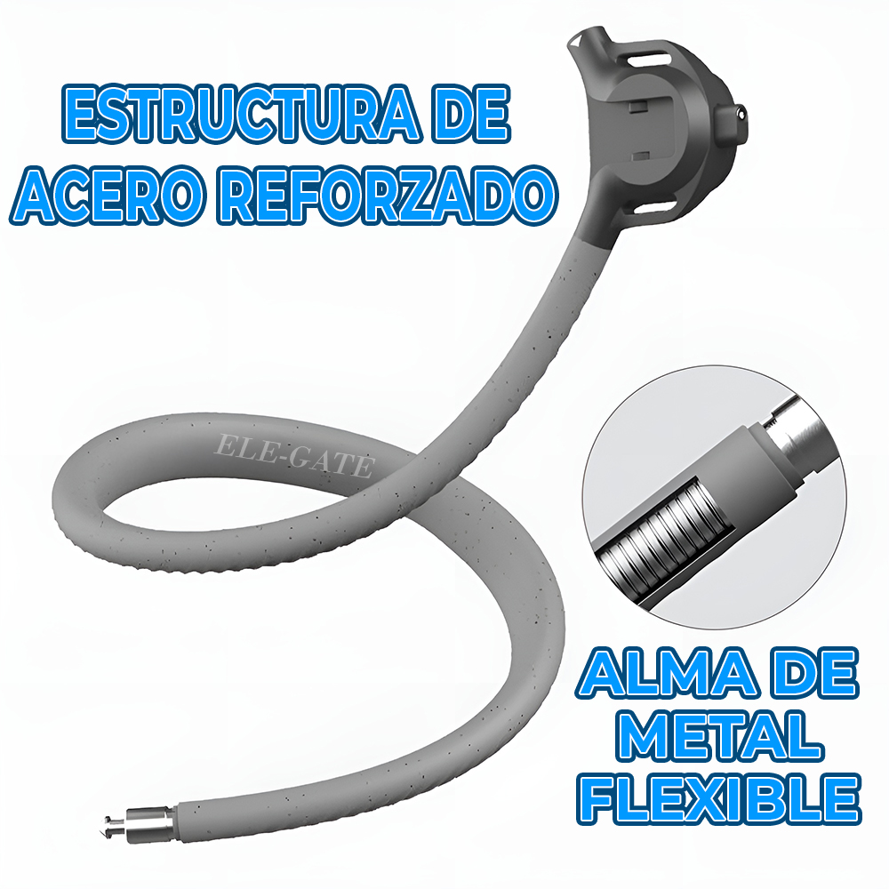 Su estructura combina tubo de cuello de acero inoxidable y varilla de aluminio flexible, lo que permite ajustarlo en múltiples ángulos para un uso personalizado. El revestimiento de silicona es suave al tacto, estable y antideslizante, proporcionando comodidad y durabilidad en cada uso. Ideal para ver videos, realizar transmisiones en vivo, videollamadas o utilizarlo como soporte mientras viajas.