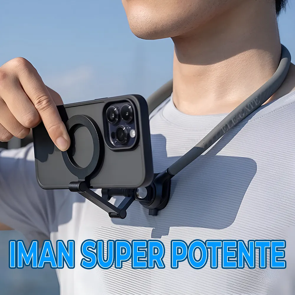 Soporte Magnético para el Cuello con sistema Magsafe, compatible con iPhone 16/15/14/13 e incluye adaptador magnético universal para teléfonos Android. Diseñado para brindarte comodidad manos libres, este soporte cuenta con imanes de alta potencia (30N) que garantizan una sujeción firme y segura de tu dispositivo, permitiendo rotar fácilmente entre orientación horizontal y vertical.