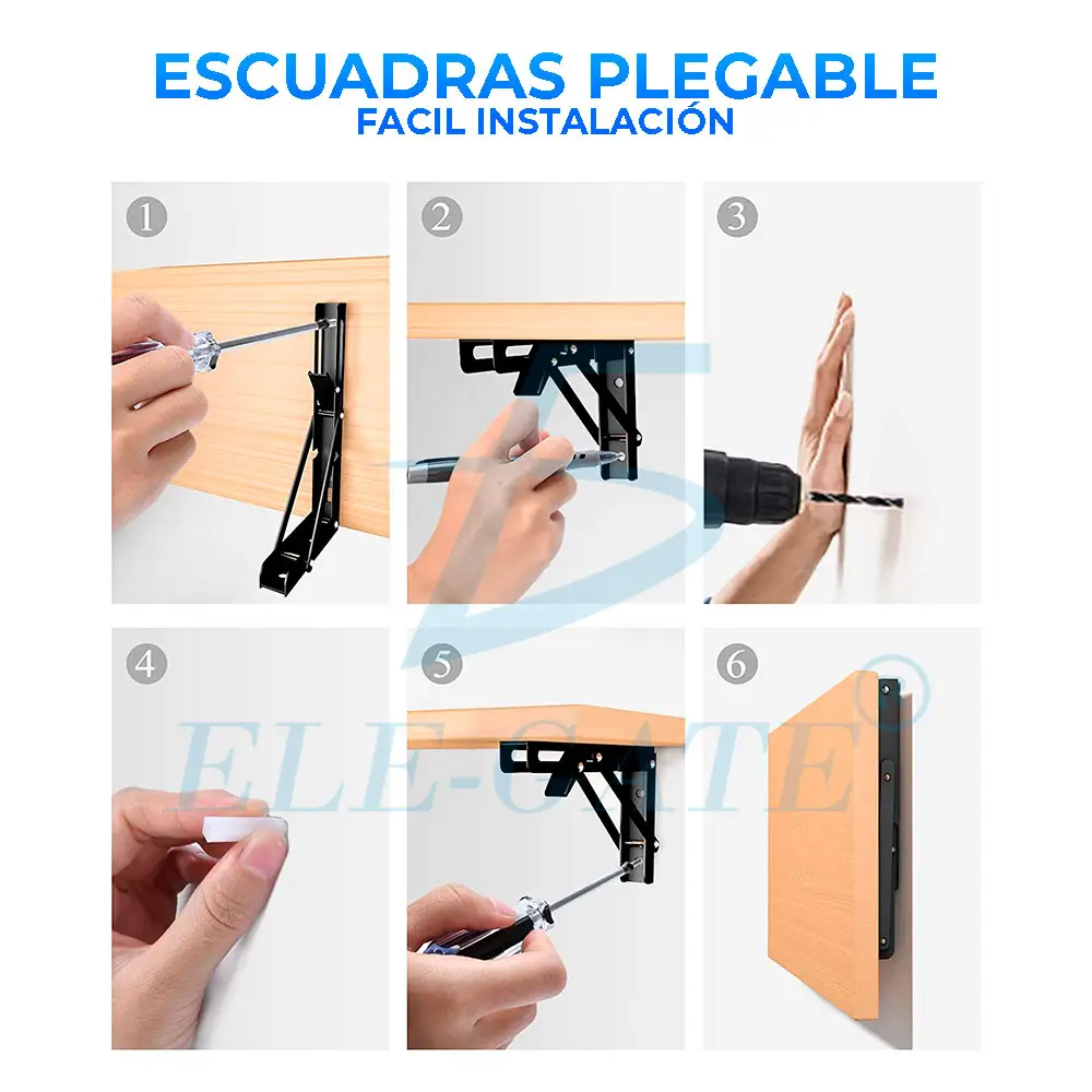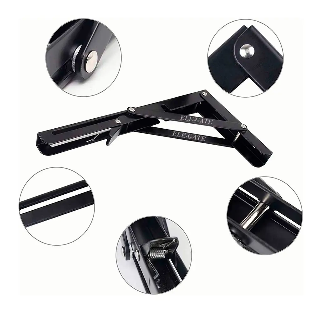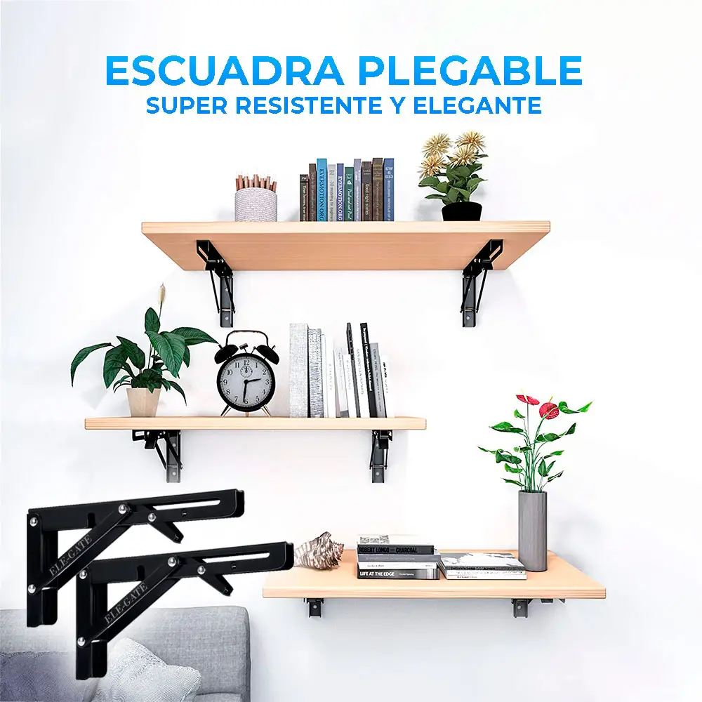 Soporte Ménsula Brazo P/repisa Abatible Plegable 8 Plugadas 1 Par Negro
