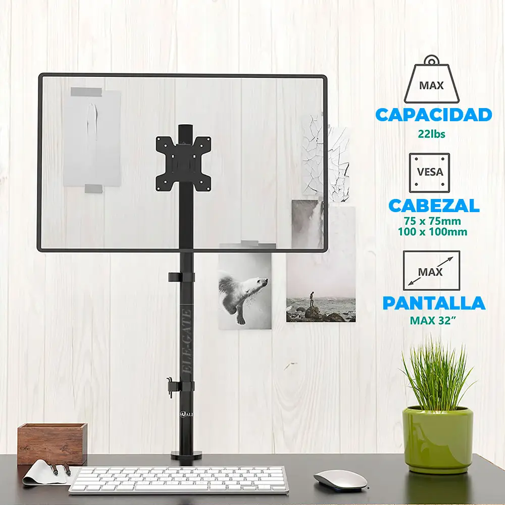 Se adapta a pantallas de 19 a 32 pulgadas. Monitor de computadora único y soporte de TV se adapta a la mayoría de pantallas de 19 a 32 pulgadas de tamaño con agujeros de montaje VESA de 75 x 75 mm o 100 x 100 mm. Nota: los monitores de 32 pulgadas deben estar a la altura máxima para caber en posición vertical.