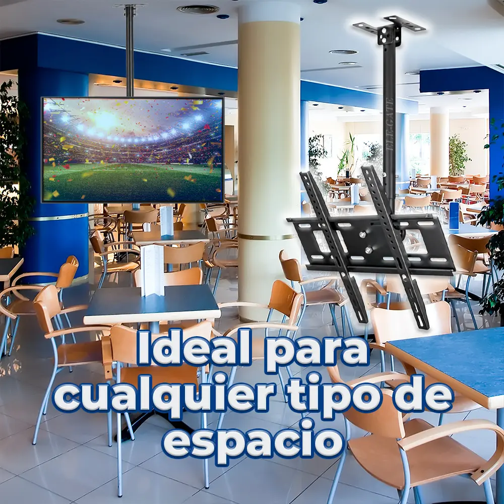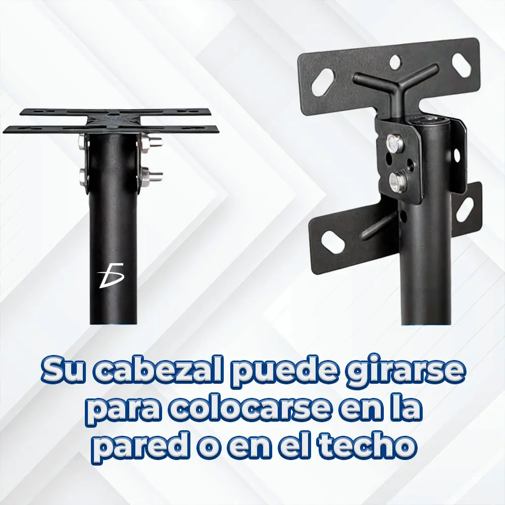 Soporte Para Pantallas de 14 a 30 pulgadas, soporta hasta 30 kilos, con cabezal que se puede colocar en la pared o en el techo facilitando su instalación en espacios pequeños.
