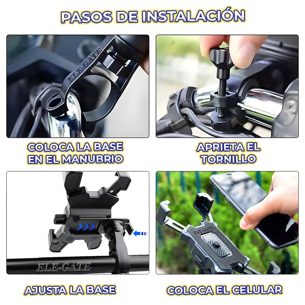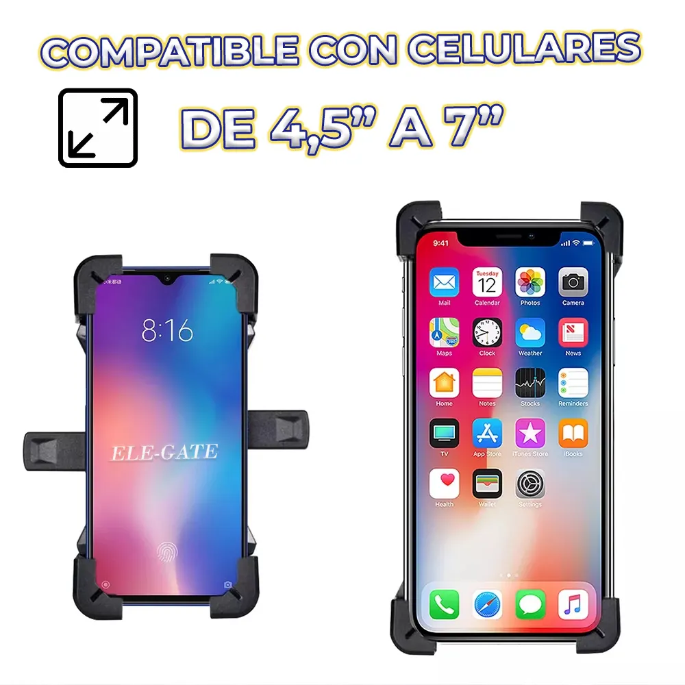 Soporte para teléfono móvil antideslizante, ajustable para pantallas de 4.5 a 6.8 pulgadas. Construcción reforzada con agarraderas súper resistentes que garantizan la seguridad de tu dispositivo.