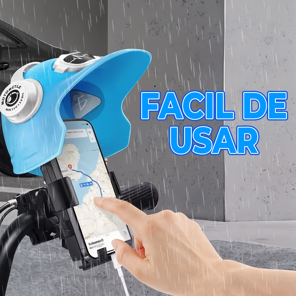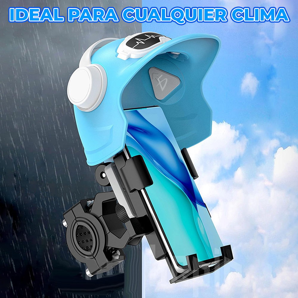 La sombrilla estilo casco ofrece sombra y protección contra lluvia, reflejos y luz directa del sol, permitiéndote ver la pantalla con claridad y mantener una navegación GPS fluida y sin distracciones. Su estructura es súper estable y antivibración, garantizando que tu dispositivo permanezca firme incluso en terrenos irregulares o a altas velocidades.