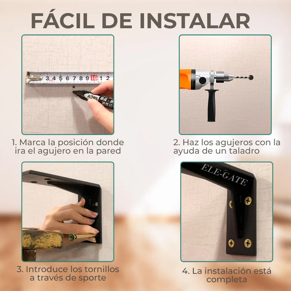 Descripción: Mantén tus estantes seguros y en óptimas condiciones con estos soportes resistentes y duraderos con revestimiento antioxidante. Este set incluye 2 unidades que te permitirán sostener tus estantes de forma segura y confiable, brindándote una solución práctica y resistente para organizar tus espacios.