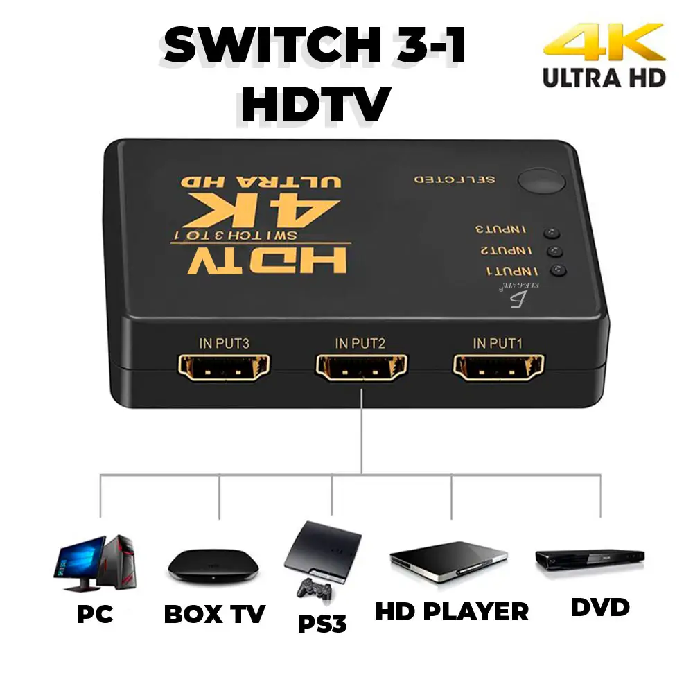 Switch Hdmi 4k Control Remoto Ps3 Xbox Pc Laptop 3 Puertos
