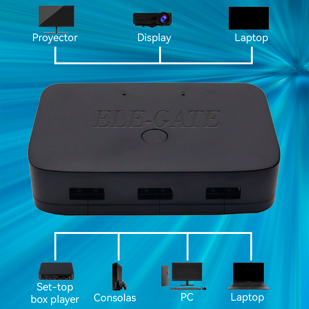 Permite alternar libremente entre 3 computadoras usando la misma pantalla y periféricos USB.