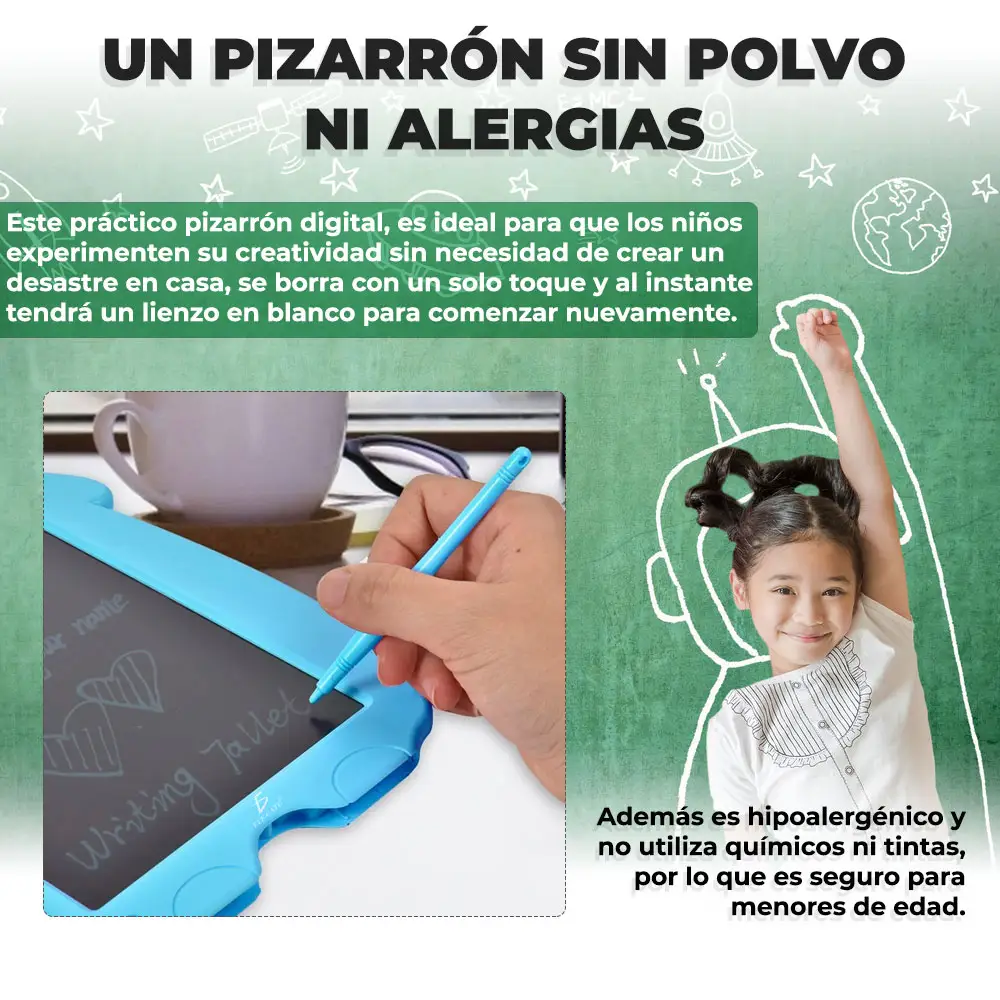 Ideal para que los niños y niñas jueguen y aprendan a la misma vez ya que pueden crear todo lo que se imaginan, es muy fácil de usar. Todo lo que pinten en la tableta se puede borrar con un solo botón.Tableta Digitalizadora 8.5 Pulgadas.