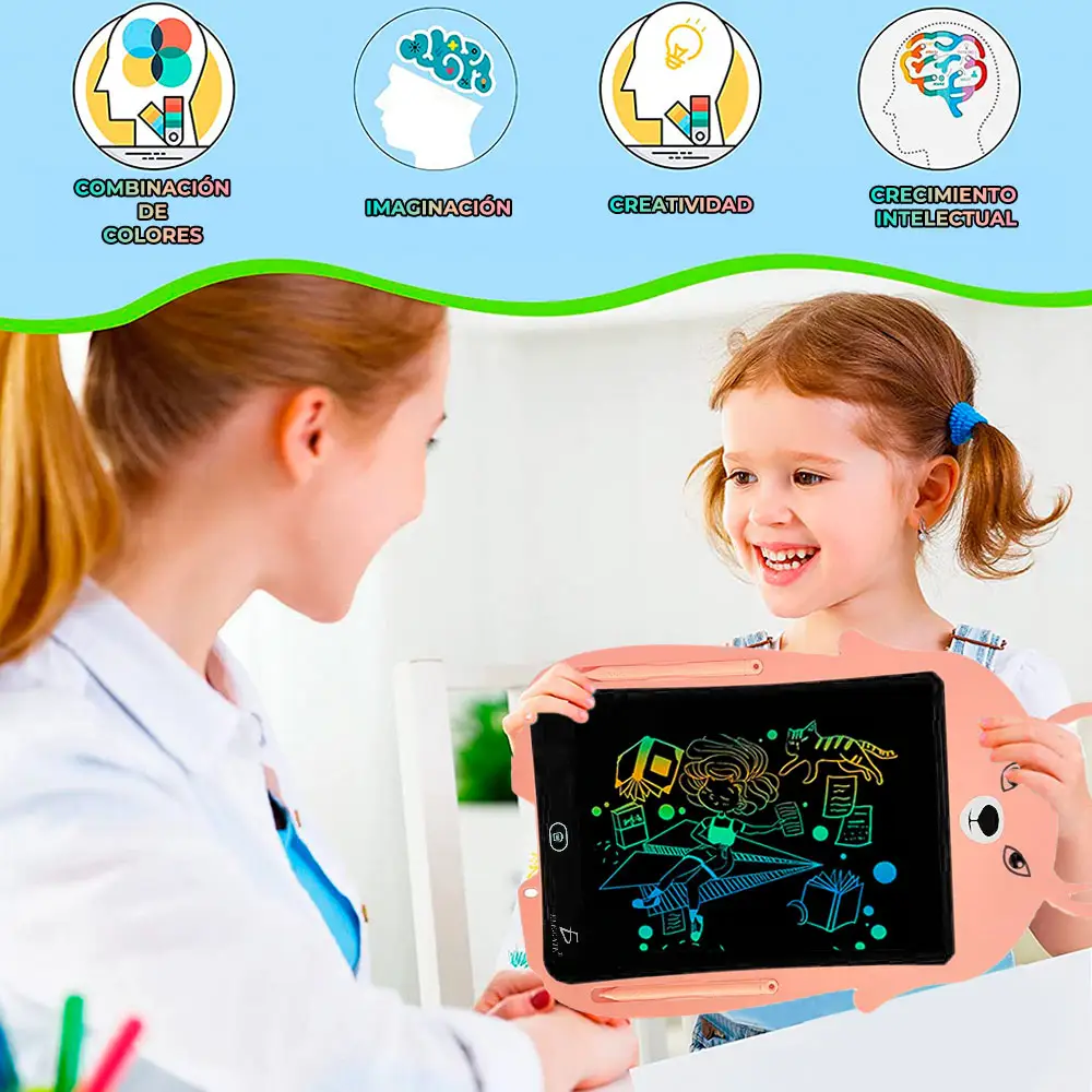Ideal para que los niños y niñas jueguen y aprendan a la misma vez ya que pueden crear todo lo que se imaginan, es muy fácil de usar. Todo lo que pinten en la tableta se puede borrar con un solo botón.Tableta Digitalizadora 8.5 Pulgadas.