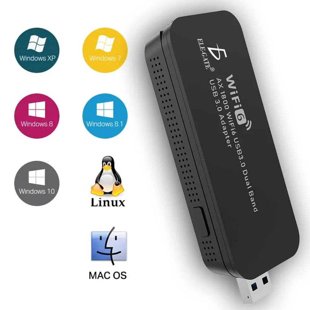 Gaming Tarjeta de red inalámbrica USB de doble banda compatible con WiFi 6 estándar, doble banda de 2,4 G y 5G, unidad Plug and Play gratis, transmisión USB 3.0