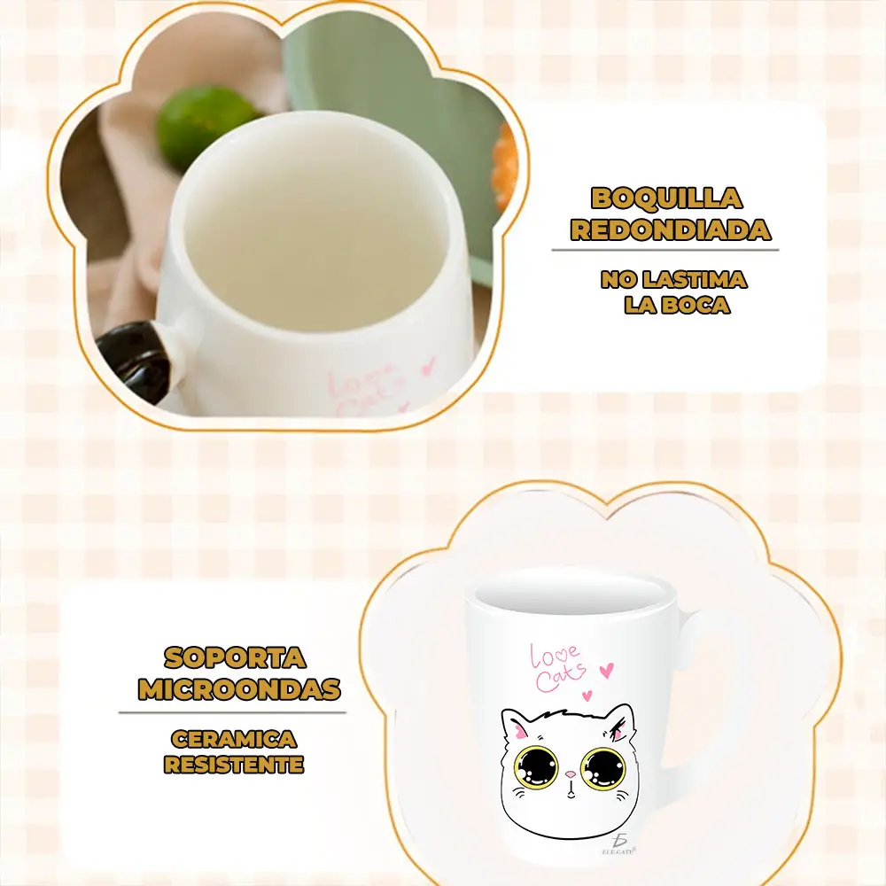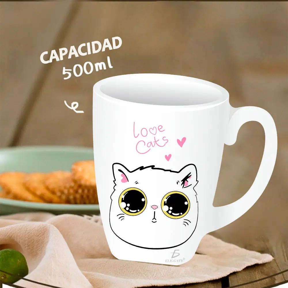 Ideal para bebidas frías y calientes: estas tazas de café pueden satisfacer perfectamente las necesidades de su vida diaria. Son perfectos para café, capuchino, leche, té y cereales, helados, cacao, bebidas calientes, también puedes usarlas para los cereales de desayuno agregan leche o sopa. Taza de Cerámica Con Dibujo de Gatito