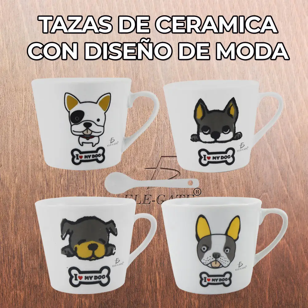 Ideal para bebidas frías y calientes: estas tazas de café pueden satisfacer perfectamente las necesidades de su vida diaria. Son perfectos para café, capuchino, leche, té y cereales, helados, cacao, bebidas calientes, también puedes usarlas para los cereales de desayuno agregan leche o sopa. Taza de Cerámica Con Dibujos de Perro