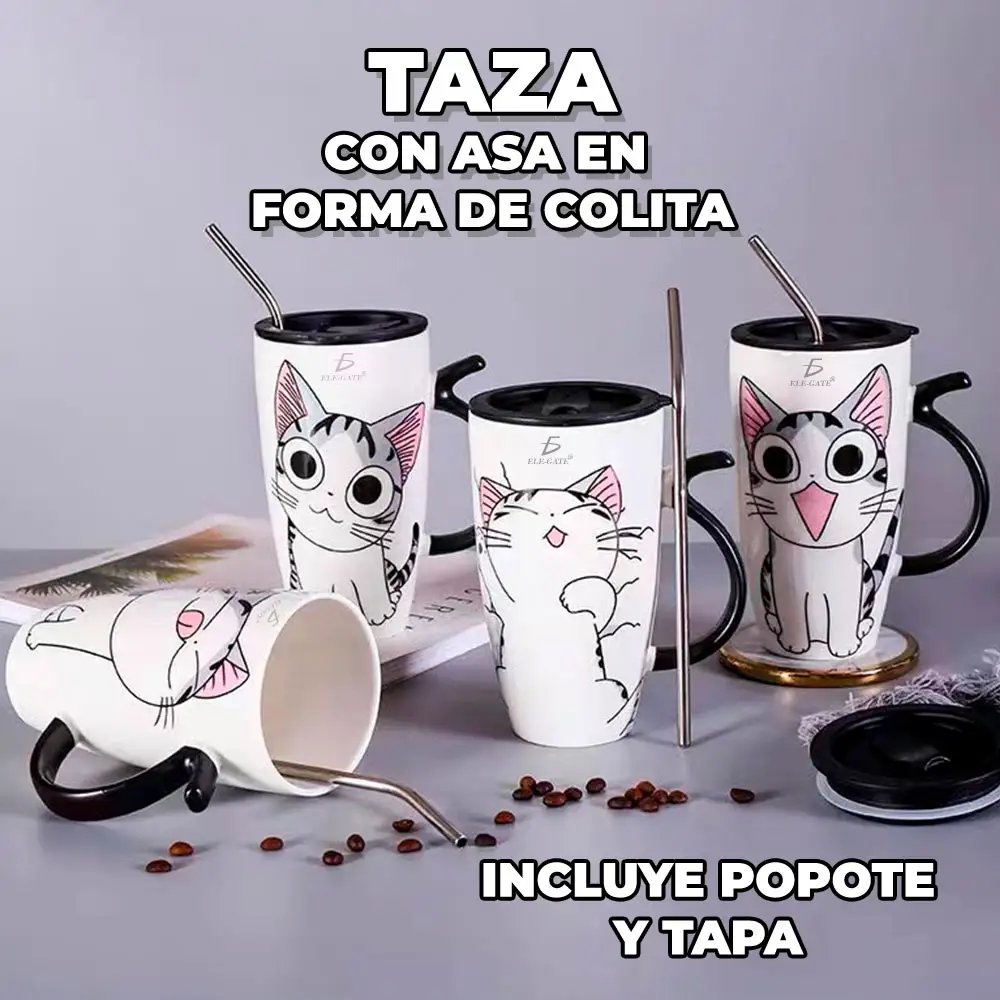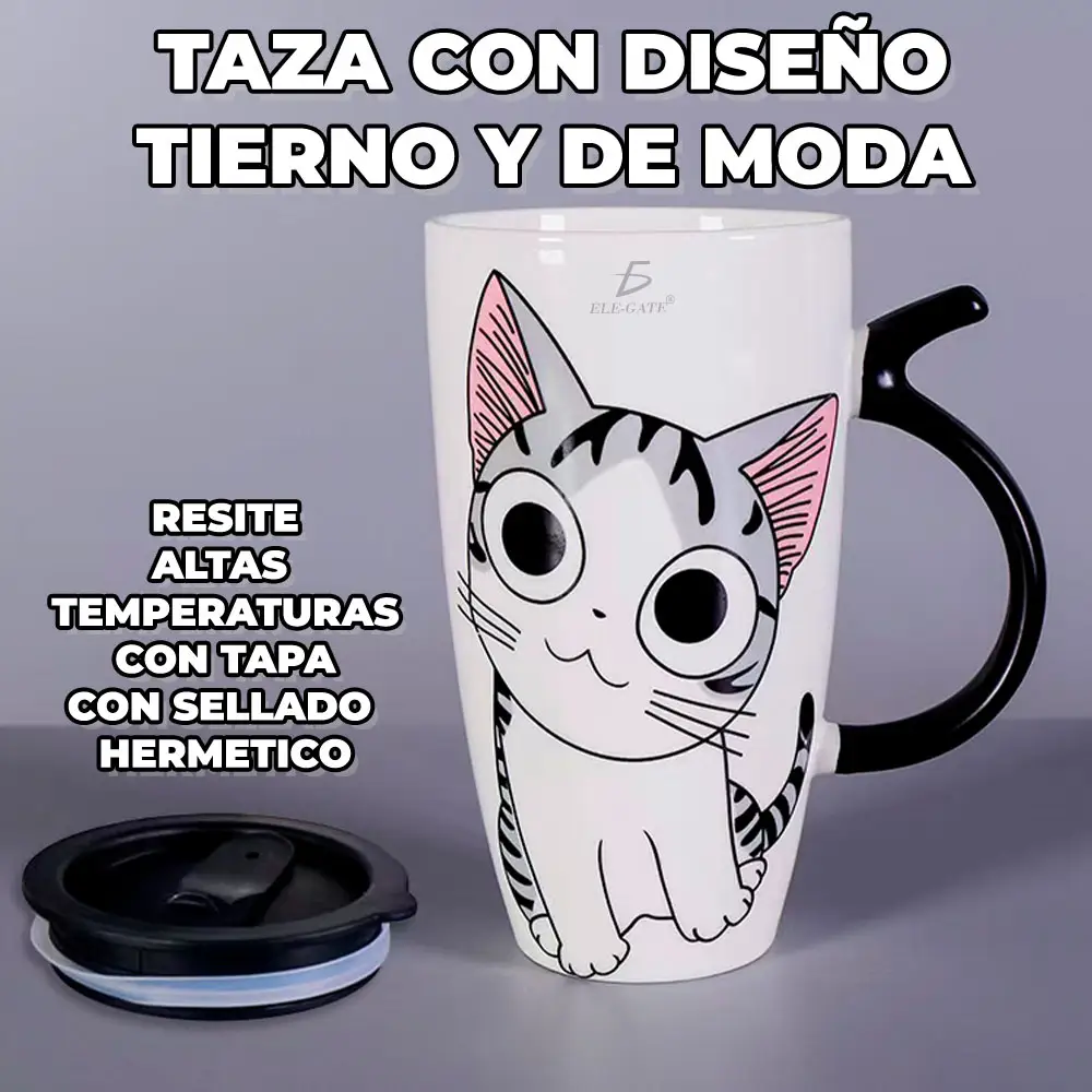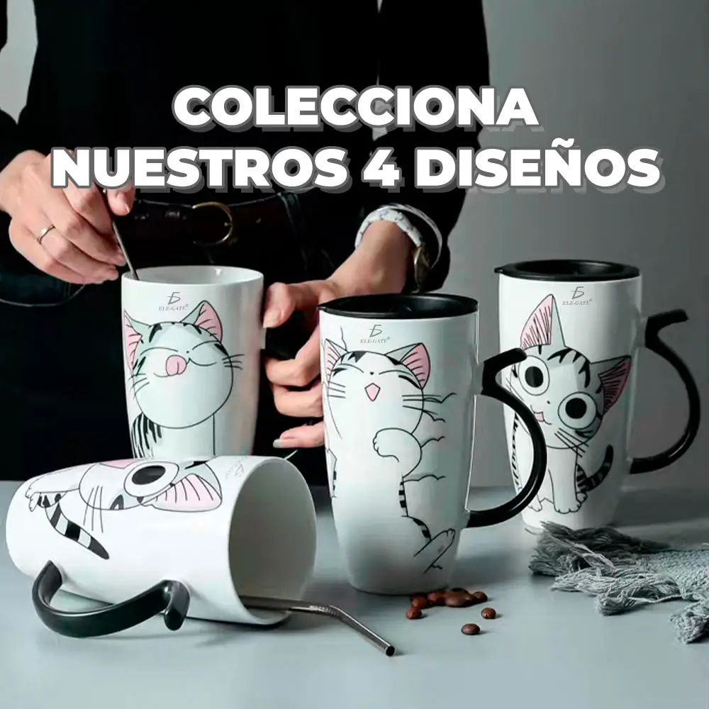 Ideal para bebidas frías y calientes: estas tazas de café pueden satisfacer perfectamente las necesidades de su vida diaria. Son perfectos para café, capuchino, leche, té y cereales, helados, cacao, bebidas calientes, también puedes usarlas para los cereales de desayuno agregan leche o sopa. Taza de Cerámica Tierna de Gatito