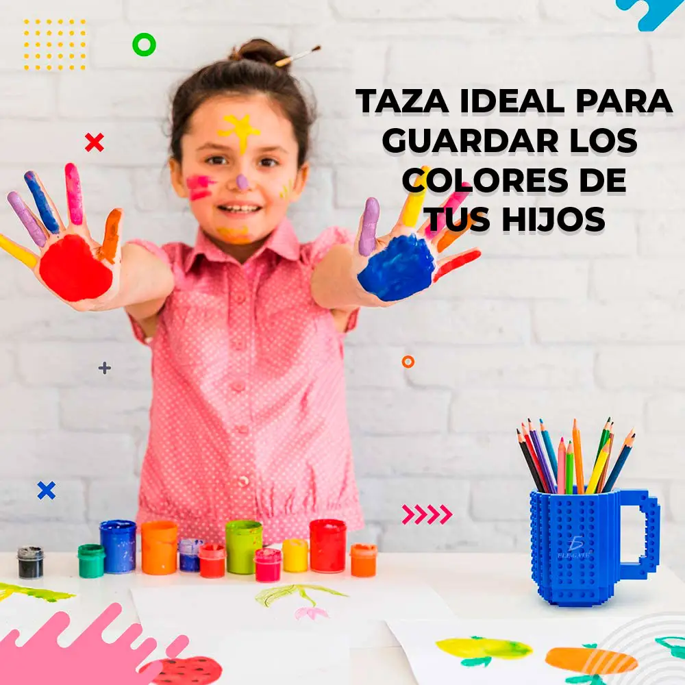 Taza Vaso Bloques De Construcción Multicolor Con Piezas Muñecos