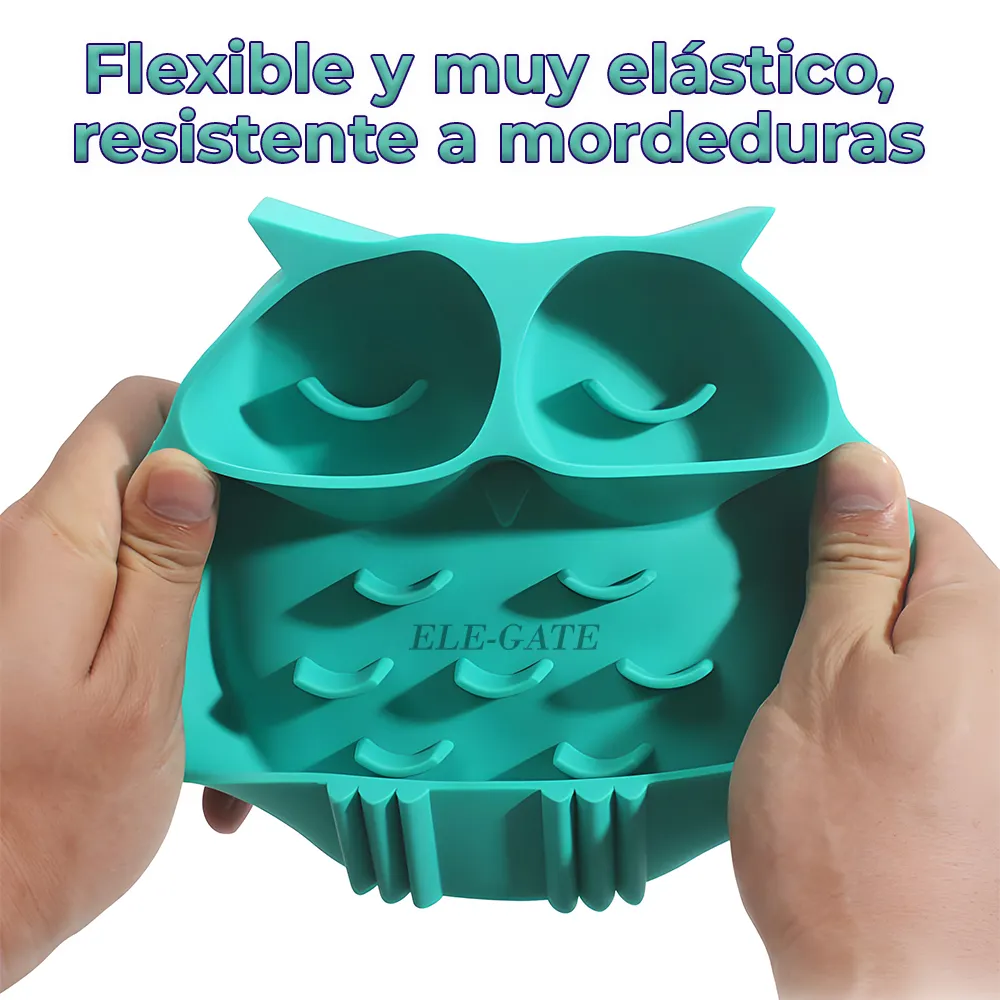 Tazón de Comida para Alimentación Lenta, Tazón de comida para mascotas con forma de búho de dibujos animados Tazón de silicona de alimentación lenta