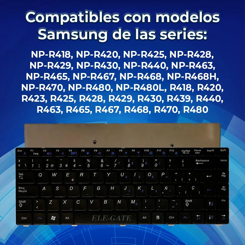 Teclado Compatible para Laptop Samsung Serie R.4 en Español compatible con R.420 R.423 R.25 R4.28 R.430 R.440 compatibilidad garantizada y estética idéntica a la original