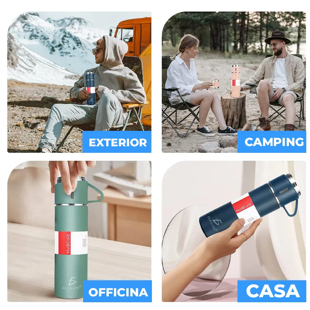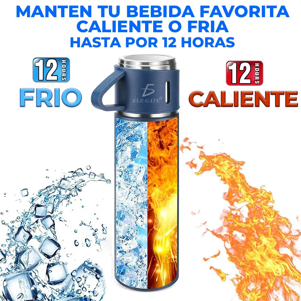 Termo con tazas incluidas para té y Café de Acero Inoxidable.