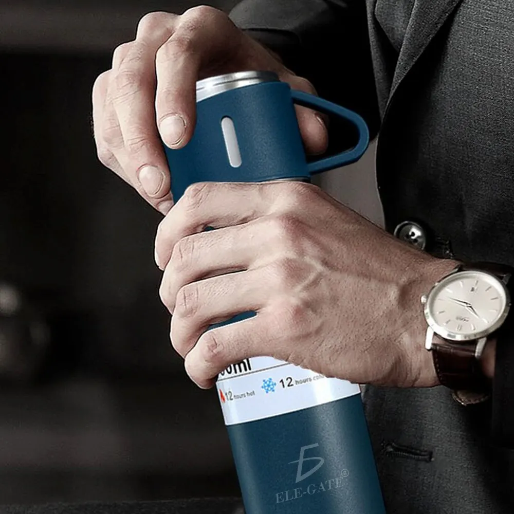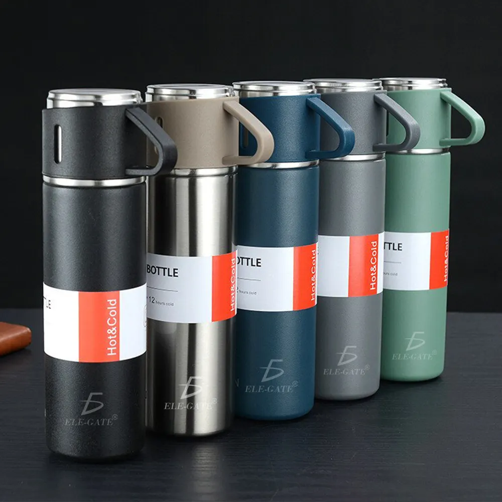 Botella aislada al vacío con tapa Incorporada a prueba de fugas de 500 ml con tazas, taza de café de viaje
