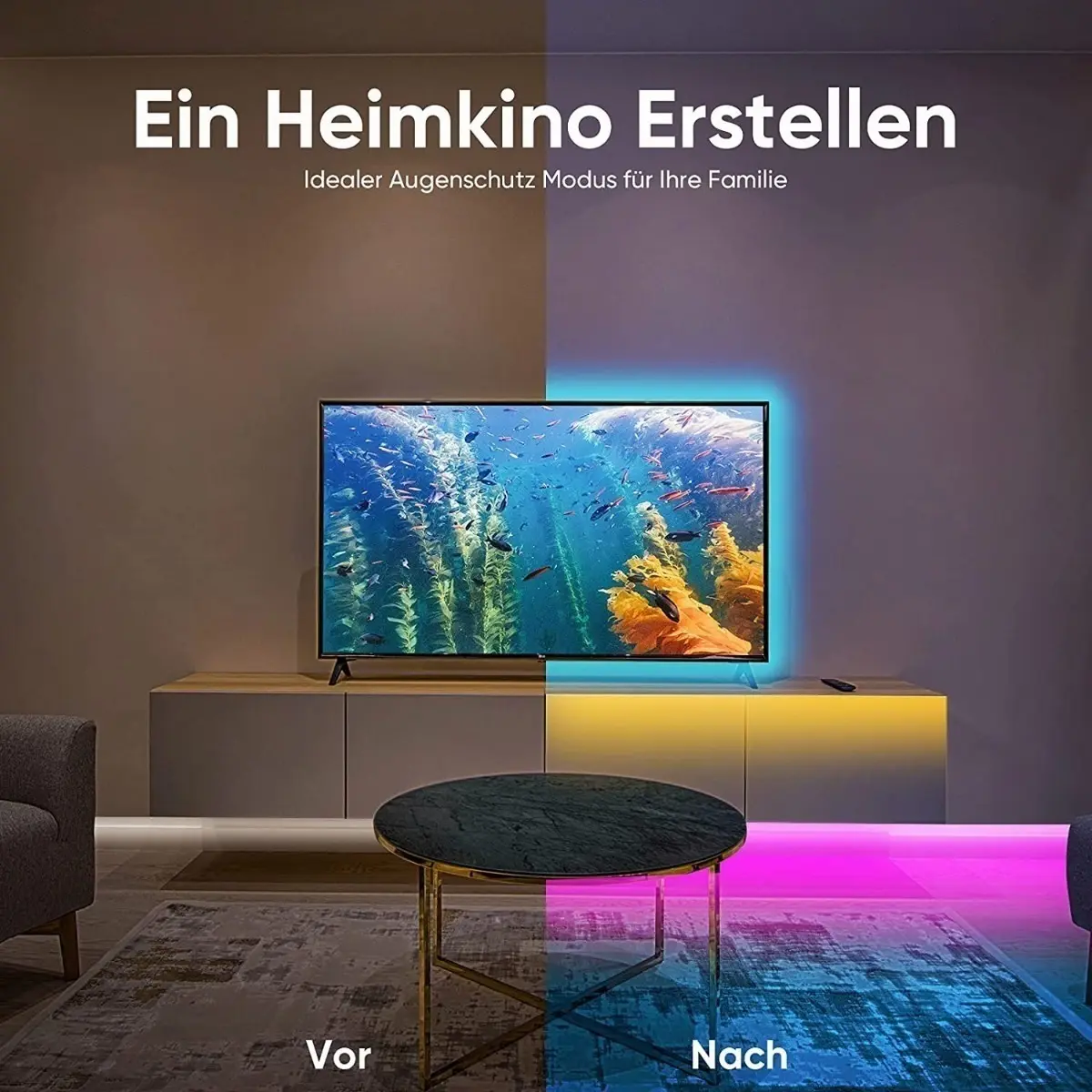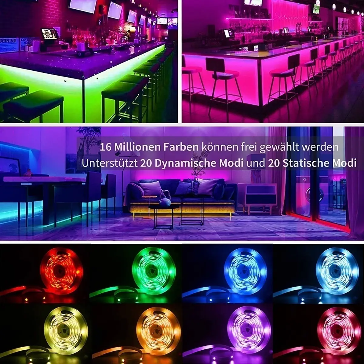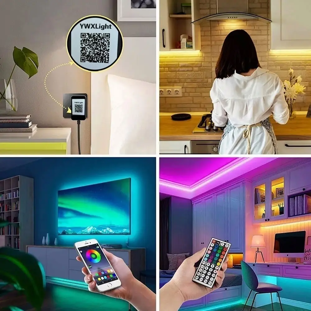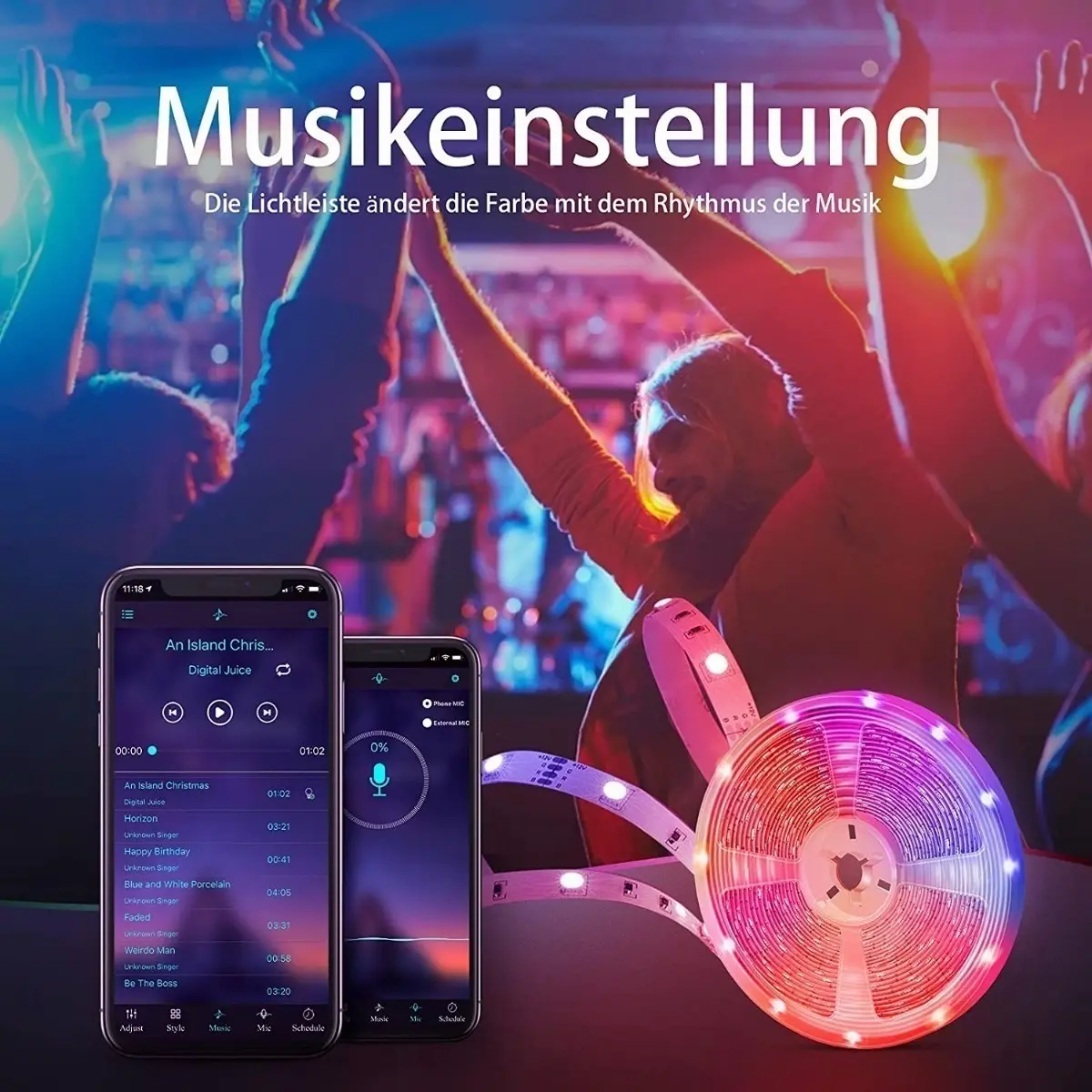 [Sincronización con música] La tira de luz LED está compuesta por 200 cuentas de lámpara y 16 millones de colores. El color de la tira LED cambia con el ritmo de la música. Solo necesita descargar música en el reproductor, y la barra de luz LED latirá según el ritmo. Ideal para instalar en salón, dormitorio, escalera, cocina, porche, bar, TV, ordenador, árbol de navidad.