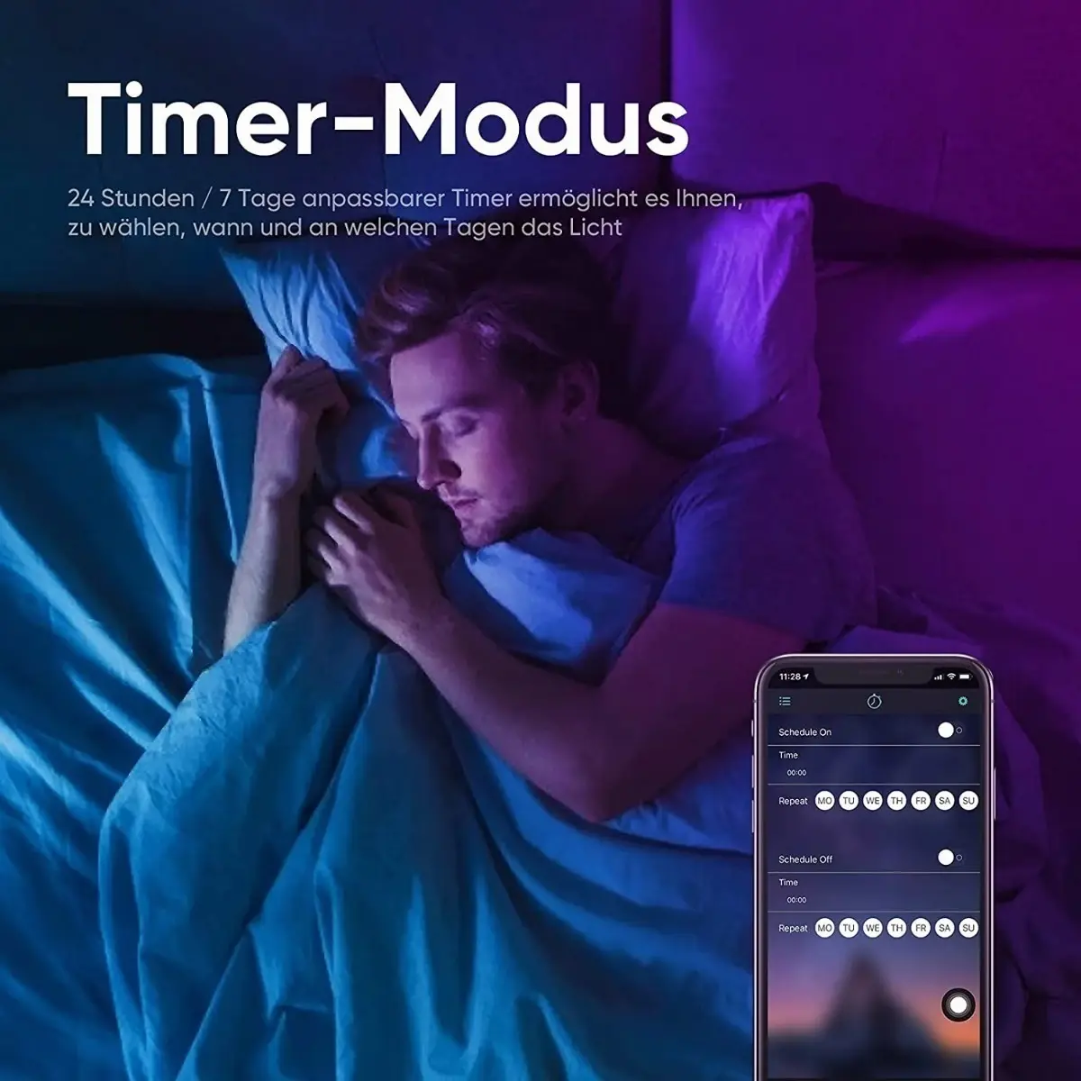 [Barra de luces LED con función de memoria de tiempo] La cadena de luces LED tiene una función de memoria de tiempo. Puede crear un horario personal en la aplicación Lotus Lantern. Después de configurar la hora, puede encender o apagar automáticamente la tira de LED a través de la APP para ajustar el brillo y la velocidad de la luz. Debido a que también tiene una función de memoria, los últimos ajustes se pueden guardar para su uso repetido a través de esta función.
