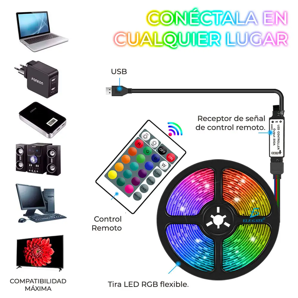 Tira de Luz Led RBG 5050 Con Control de 5 Metro Y Cambio De Color