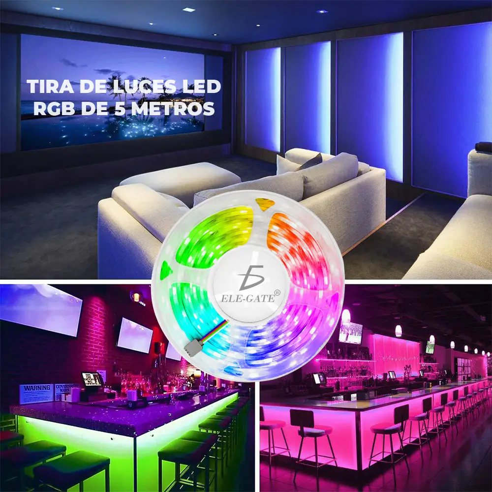 Tira de Luz Led RBG 5050 Con Control de 5M Con Enchufe