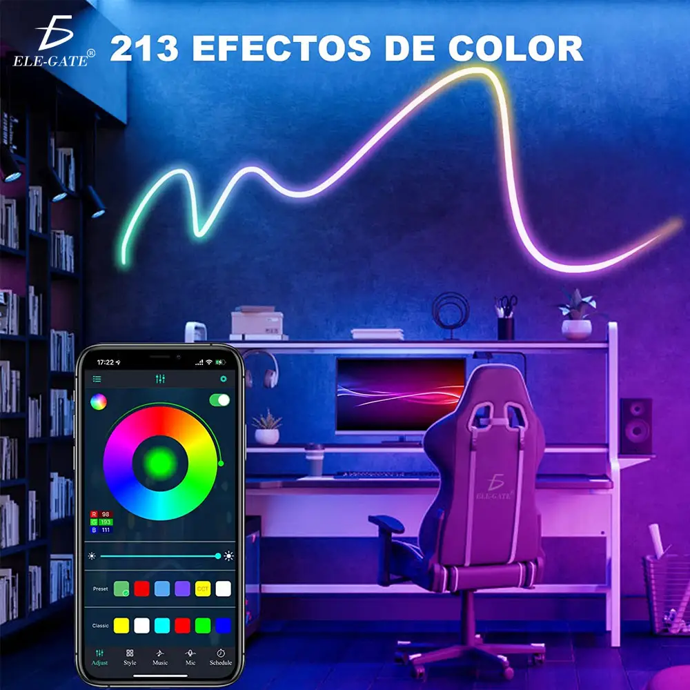 Tira De Luz Led Rgb Sincroniza Musica De Neón Ip65 Flexible Bluetooth 3M
