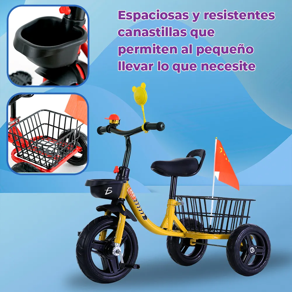 ¡Prepárate para momentos inolvidables de diversión al aire libre con nuestro triciclo con cesta de acero trasera grande! Es el compañero perfecto para que los niños exploren, jueguen y creen recuerdos que durarán toda la vida.
