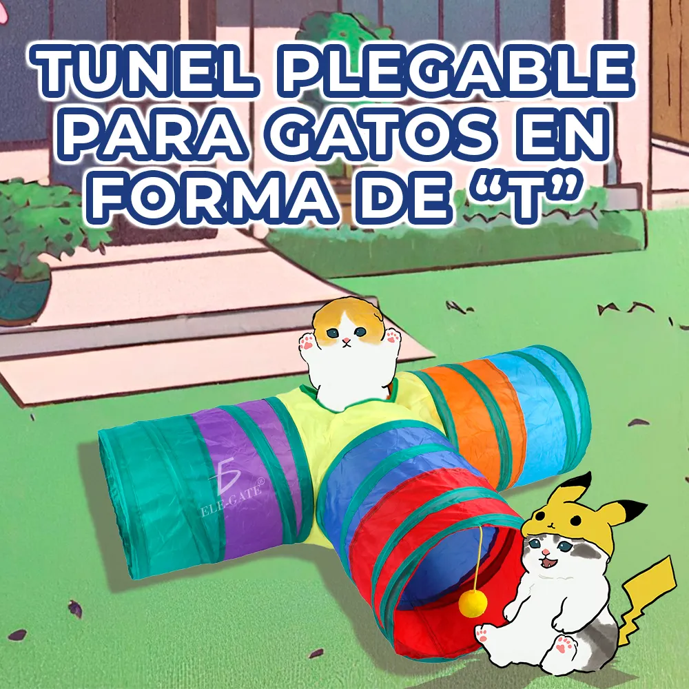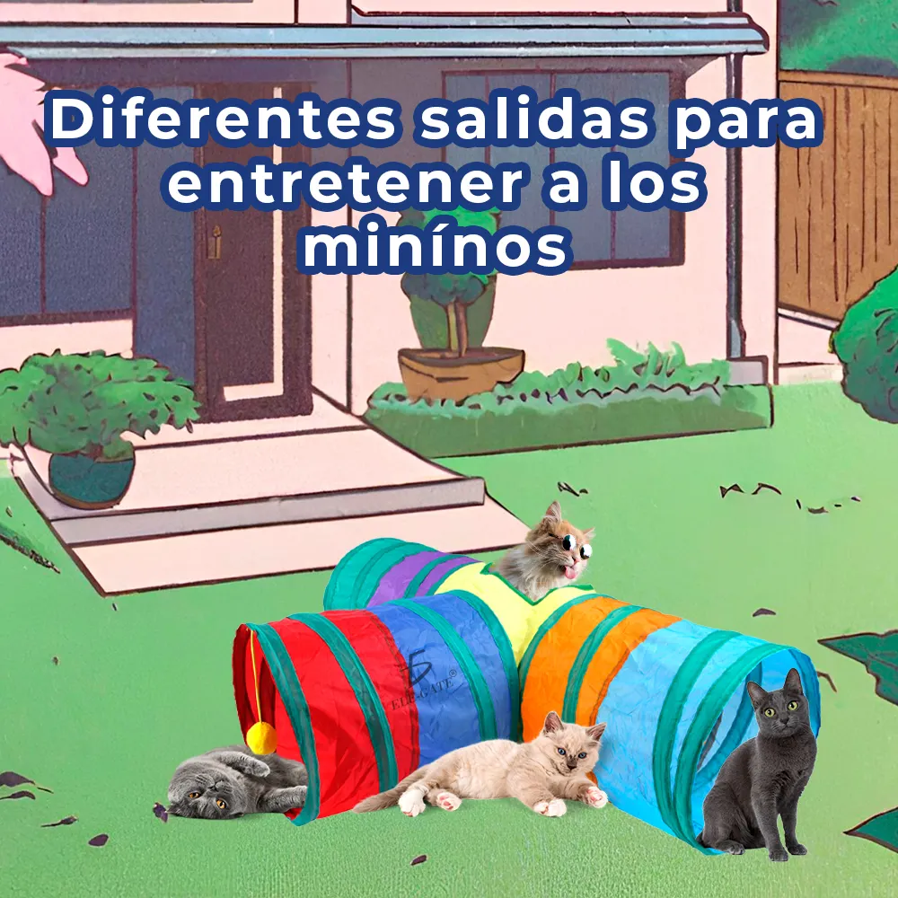 Túnel en Forma de T con Tres Salidas para Gato, Flexible y Plegable, Resistente a rasguños colorido y ayuda a fomentar sus instintos
