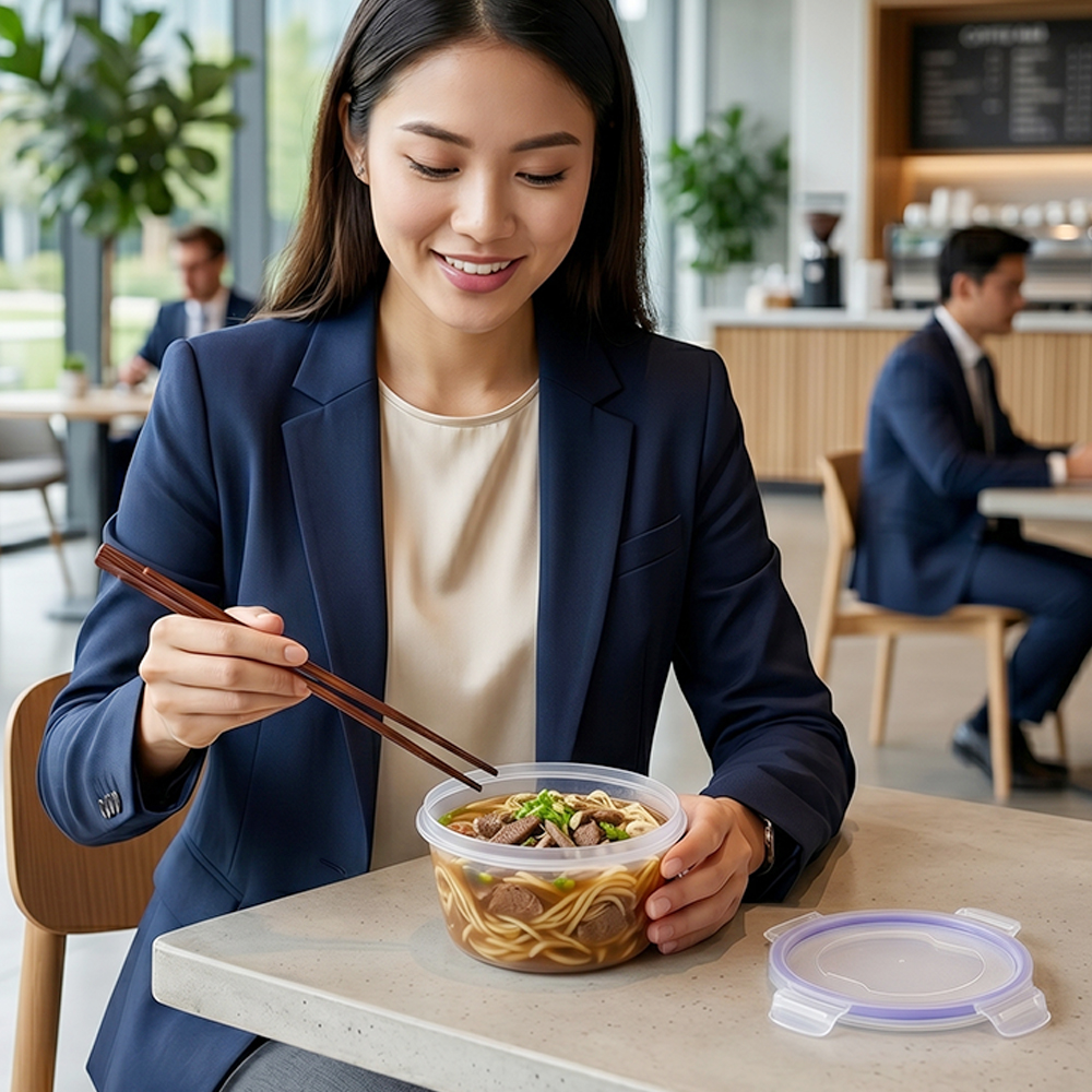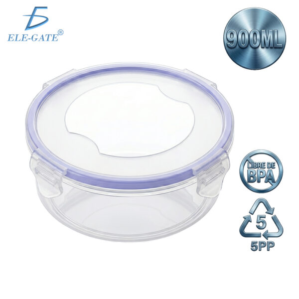 Fabricado con material libre de BPA, es una opción segura para el contacto con alimentos. Su diseño práctico lo hace ideal para llevar comida a la oficina, escuela o viajes, así como para almacenar guarniciones, frutas o comidas preparadas en el refrigerador.