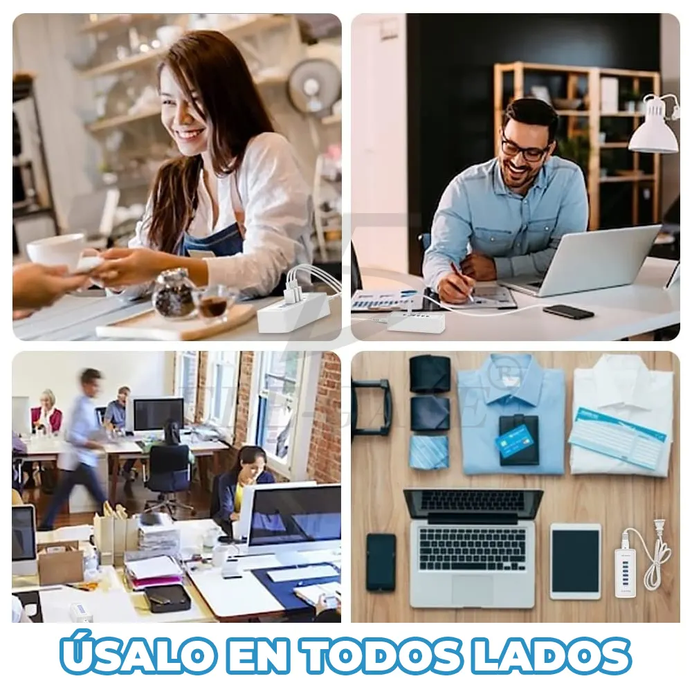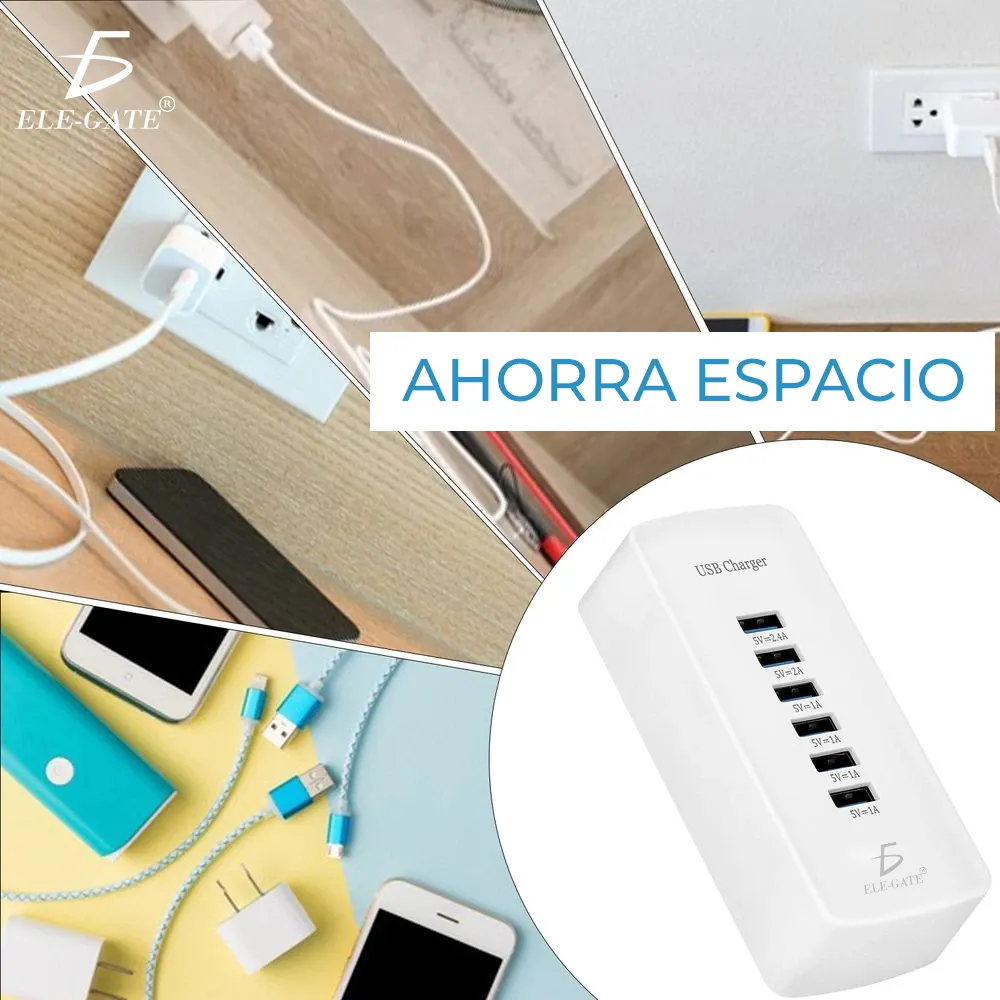 USB de 6 Puertos Estación de Carga Rápida de Escritorio de 30W Adaptador de Corriente.