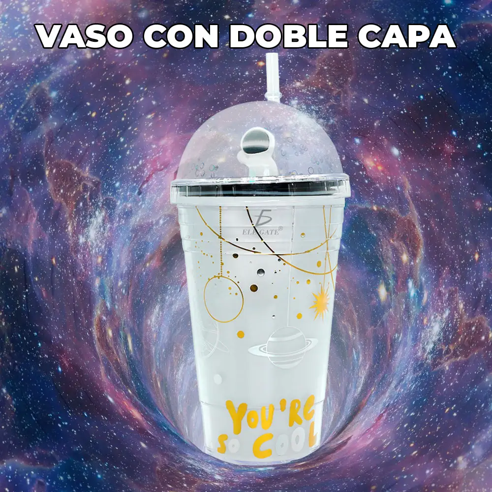 Excelente vaso para que las niños puedan utilizarlo para sus bebidas favoritas, sin que se derrame ya que tiene una tapa de rosca y un popote para que lo puedan disfrutar al máximo. Vaso Con Popote Y Tapa De Cúpula Con Planeta Cósmico Resistente.
