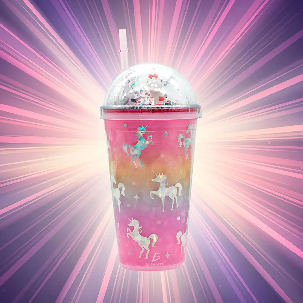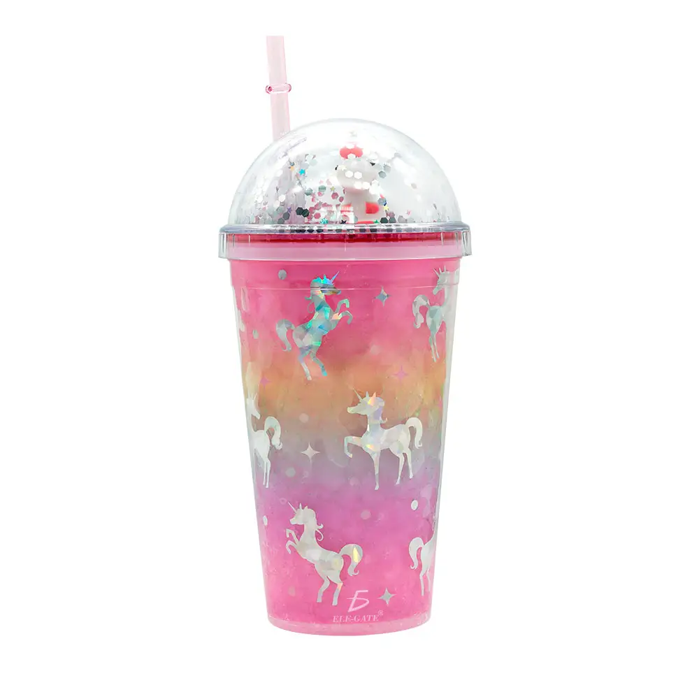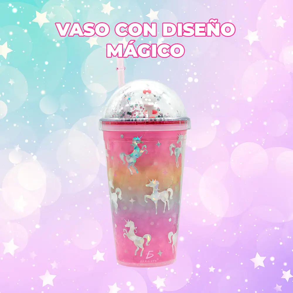 Vaso Con Popote Y Tapa De Cúpula Con Unicornio