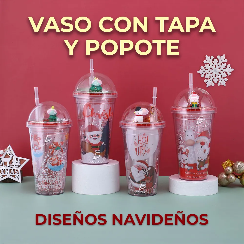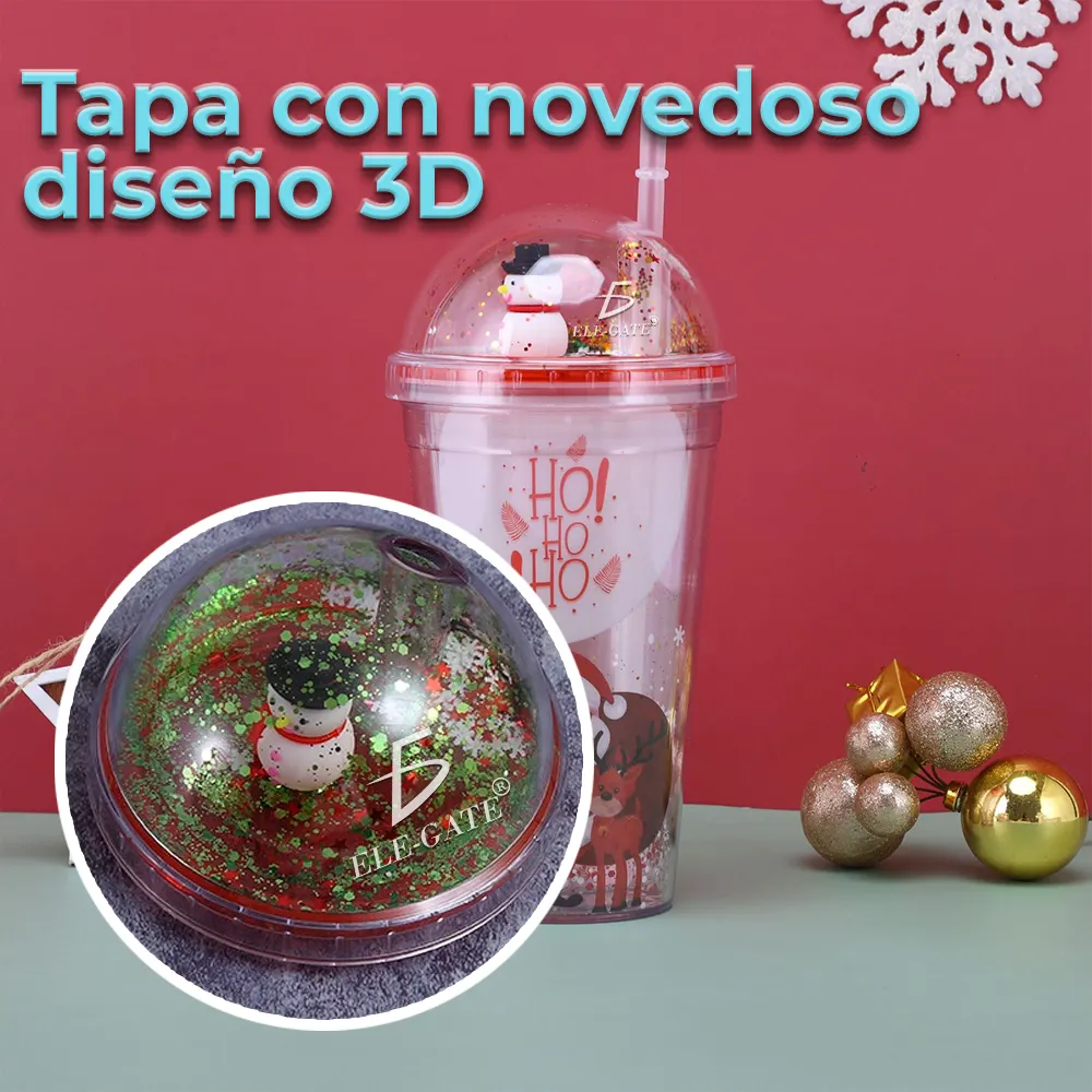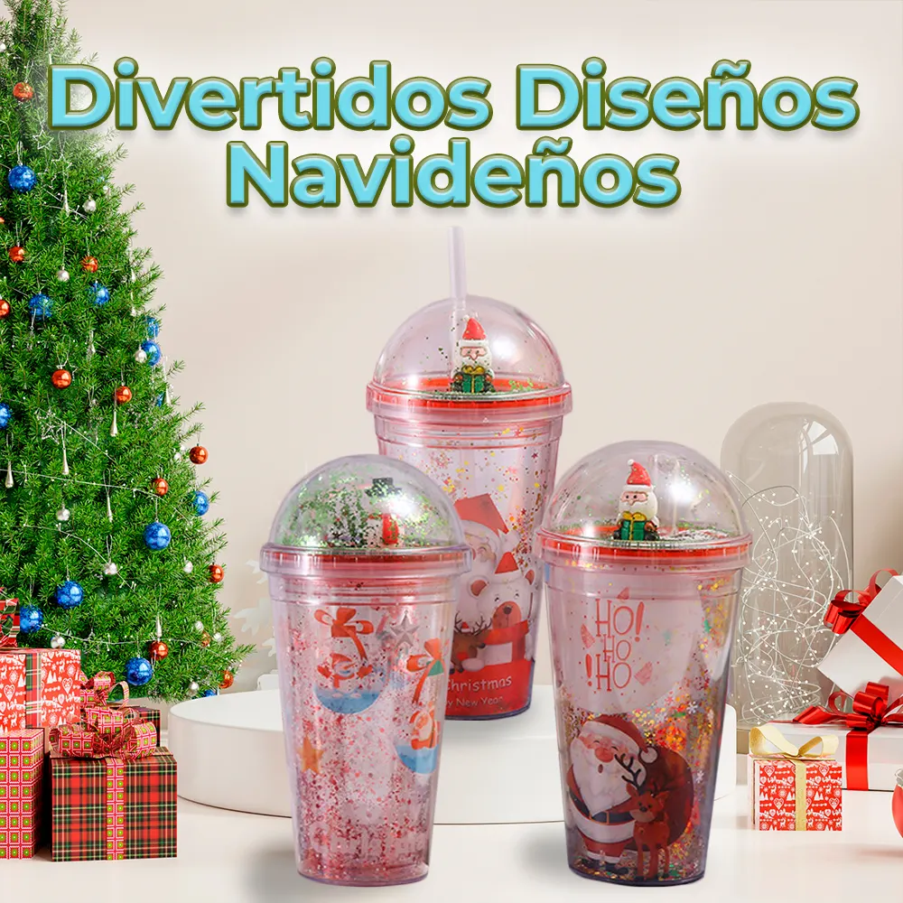 Vaso con Tapa y Pajita para Niños – Diseño Navideño y Toque de Purpurina – Material Plástico sin BPA