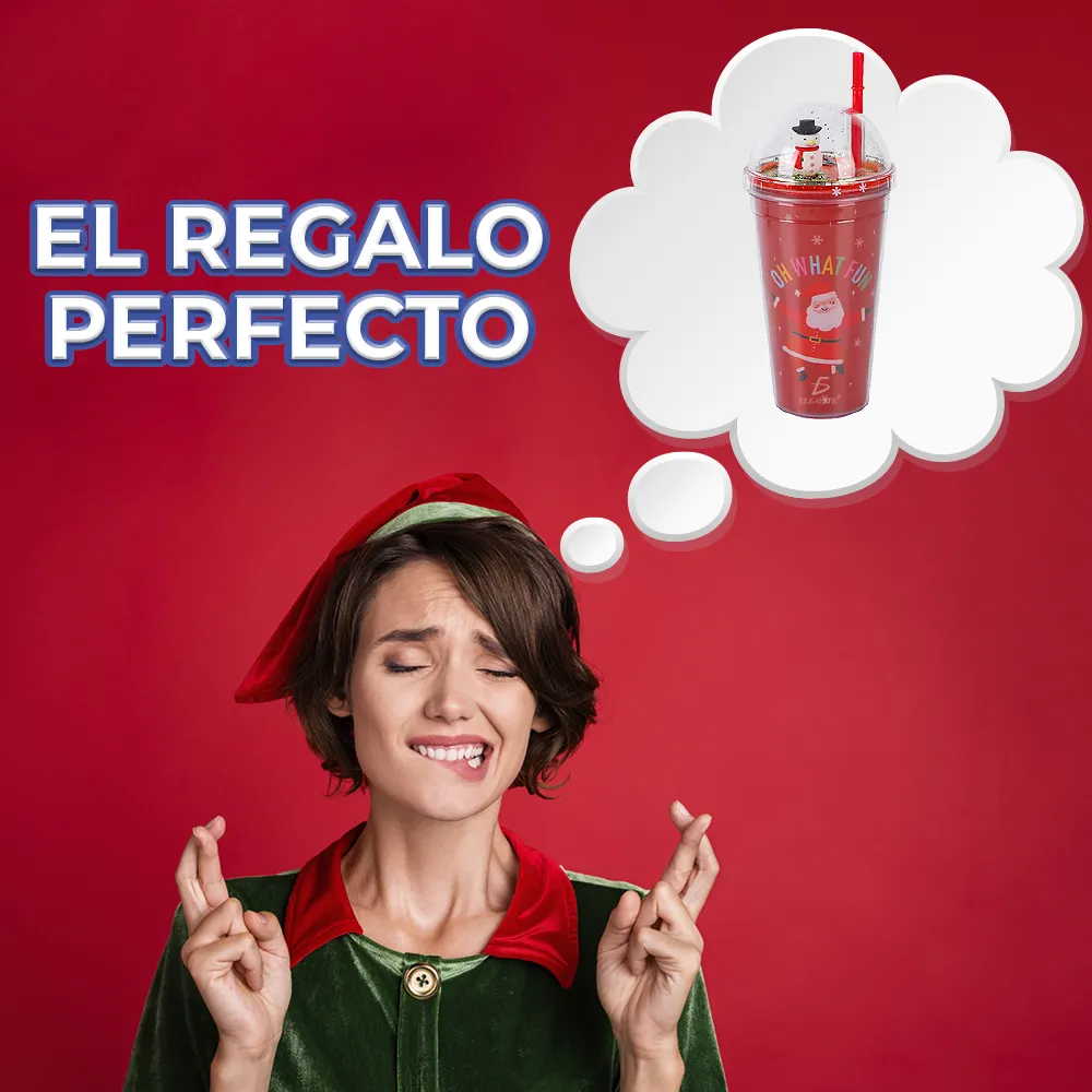 Disfruta de tus bebidas en estas fiestas con el encanto festivo del Vaso de Agua Navideño Muñeco 3D. Este vaso presenta un diseño tridimensional de muñeco navideño con un toque de purpurina que lo hace destacar en cualquier ocasión. Gracias a su doble pared, mantiene tus bebidas frías durante más tiempo mientras evita la condensación en el exterior. La tapa y la pajita reutilizables permiten llevar tu bebida contigo sin derrames. Con capacidad de 450 ml, es la elección perfecta para brindar en las fiestas navideñas o como regalo especial.