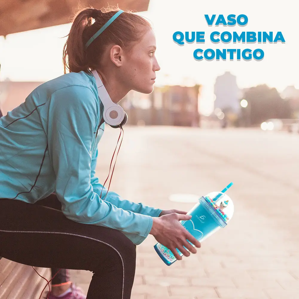 Vaso Resistente Con Popote Y Tapa De Cúpula Con Amro
