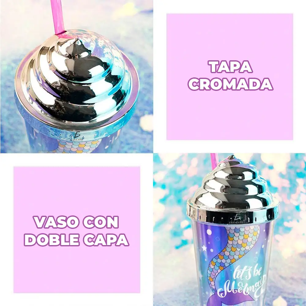 Vaso Resistente Con Popote Y Tapa De Cúpula Con Sirena
