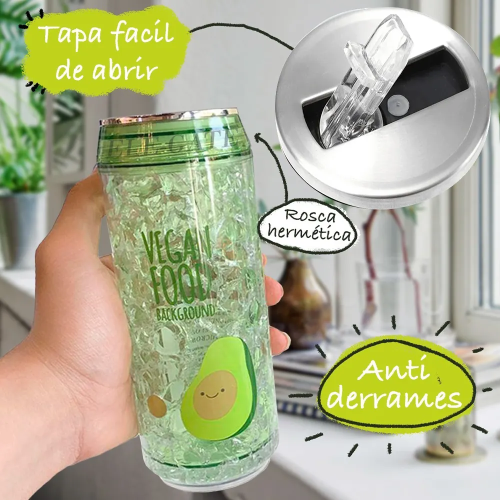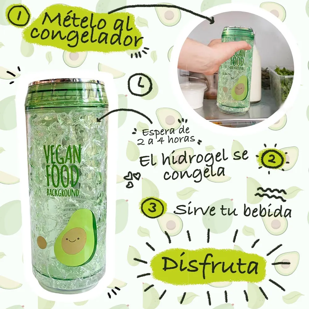 Vaso Térmico con Diseño Divertido de Aguacate – Capacidad de 500ml con Enfriador de Hidrogel