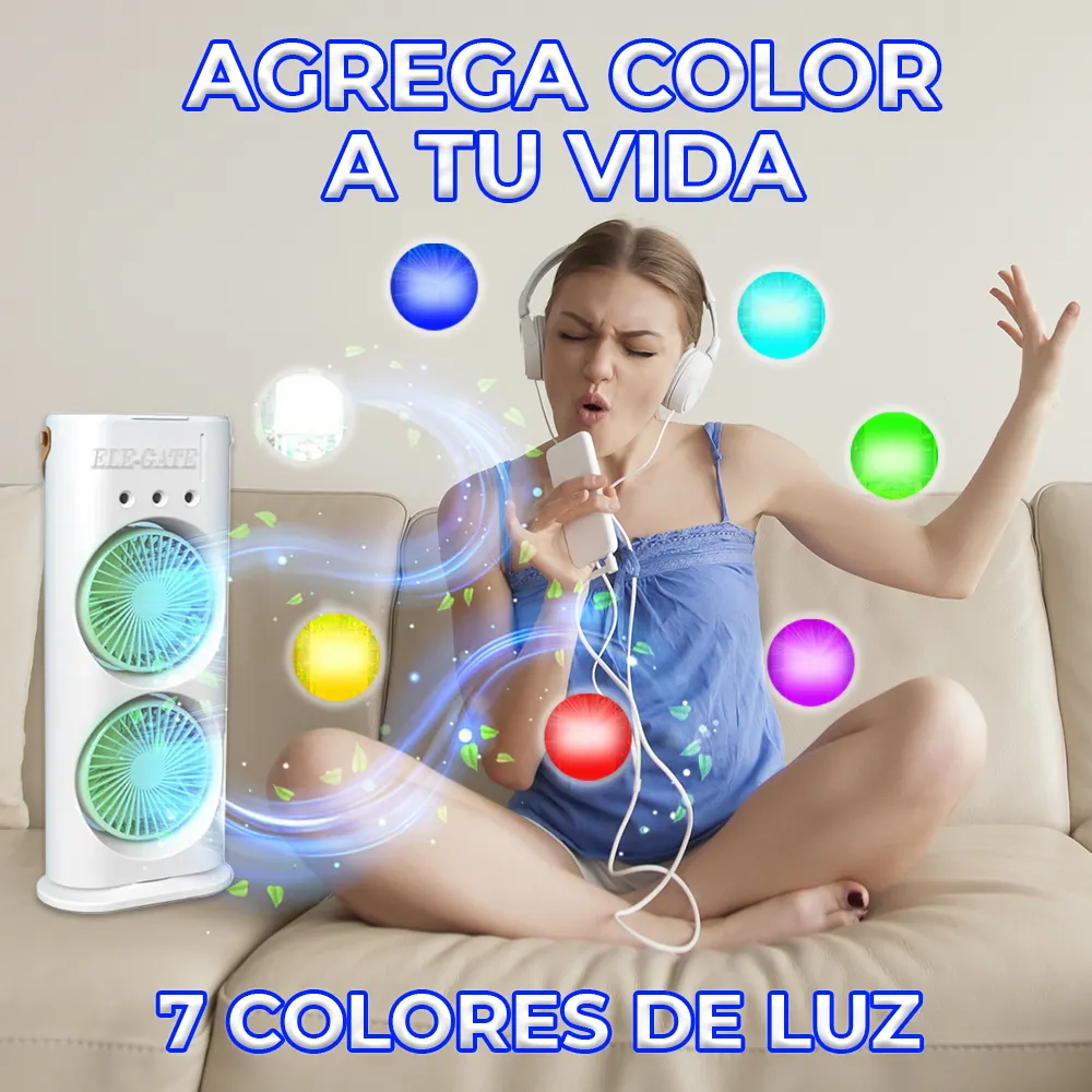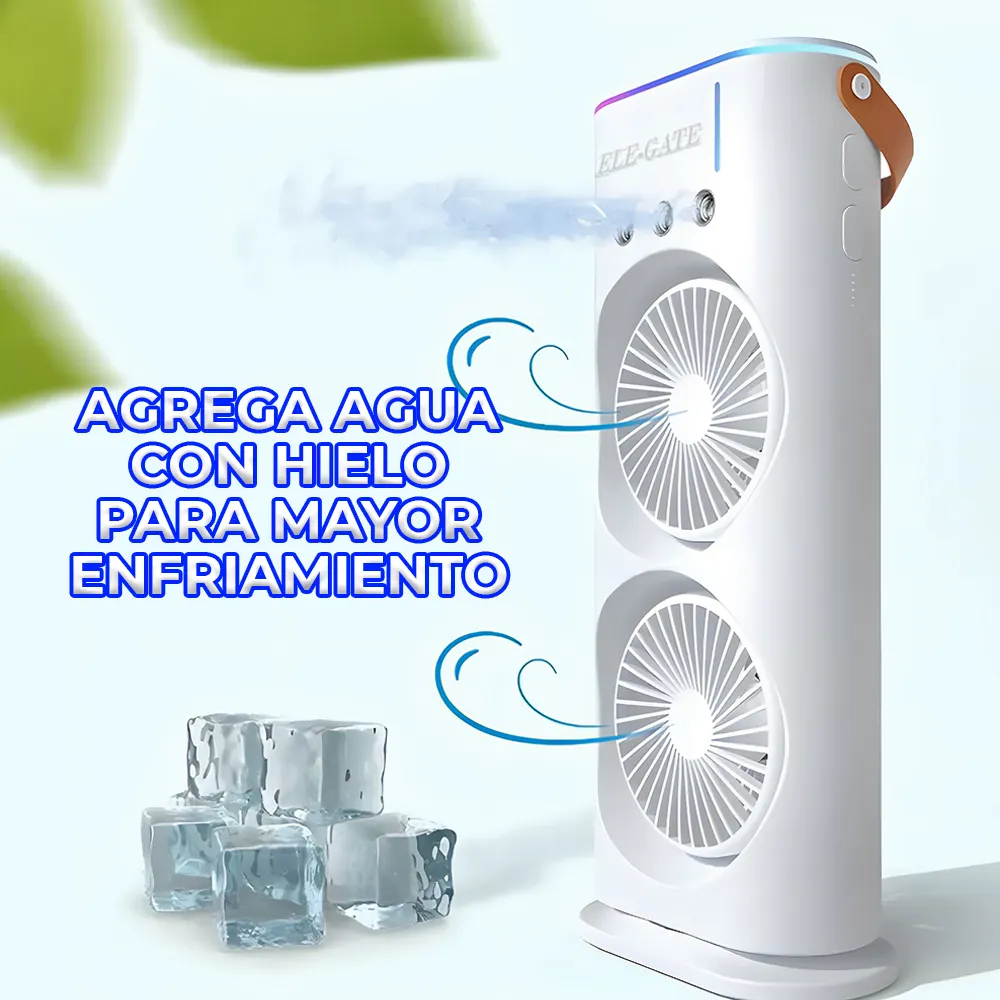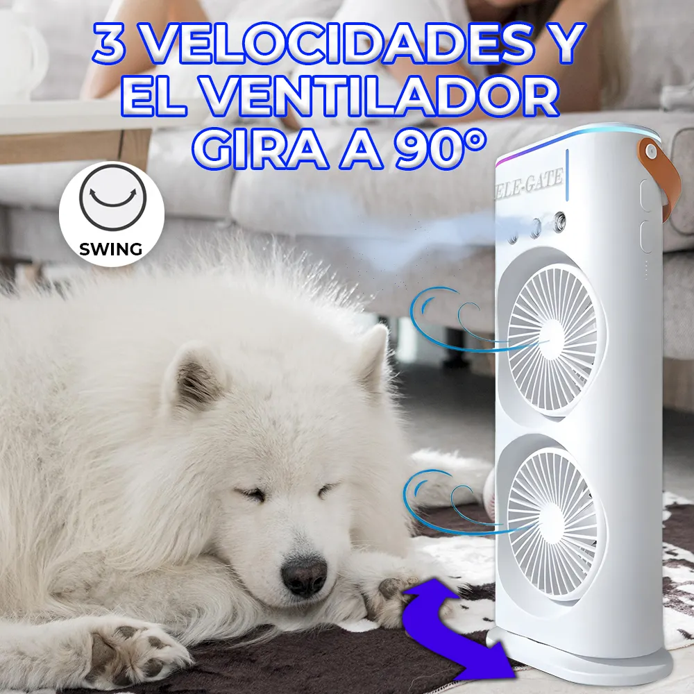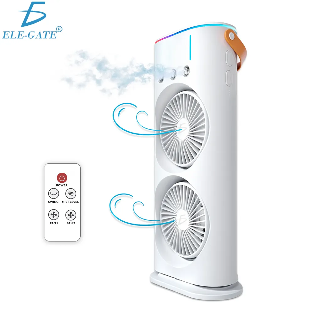 - Ventilador de torre doble con función de nebulización para un enfriamiento eficiente.