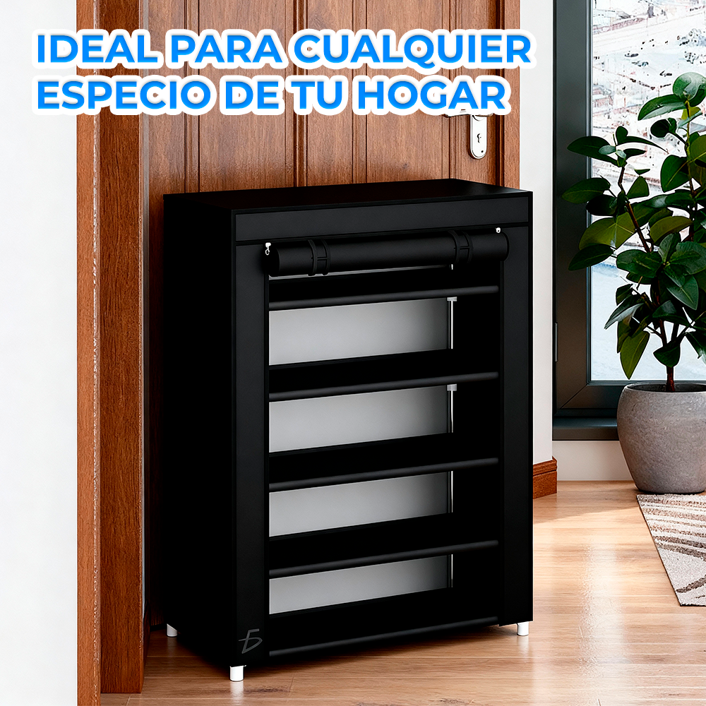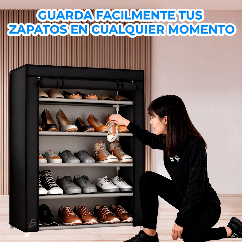 Los paneles ajustables te permiten modificar la altura entre niveles para guardar botas largas o zapatos altos de tacón, aprovechando al máximo cada compartimiento. La funda con cierre frontal protege tus zapatos del polvo y la humedad, manteniendo todo limpio y ordenado.